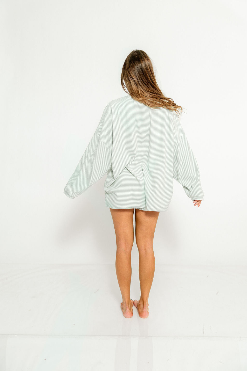 Get cozy (and trendy) with our new Naomi Top! This top is oversized yet sophisticated, the perfect top for pairing with your favorite boxer shorts or the matching Campbell Fleece Pants.