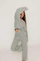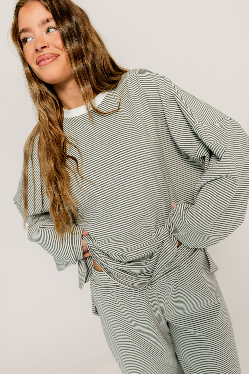Naomi Striped Fleece Oversized Long Sleeve Top in Charcoal