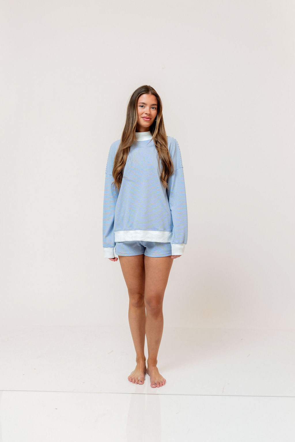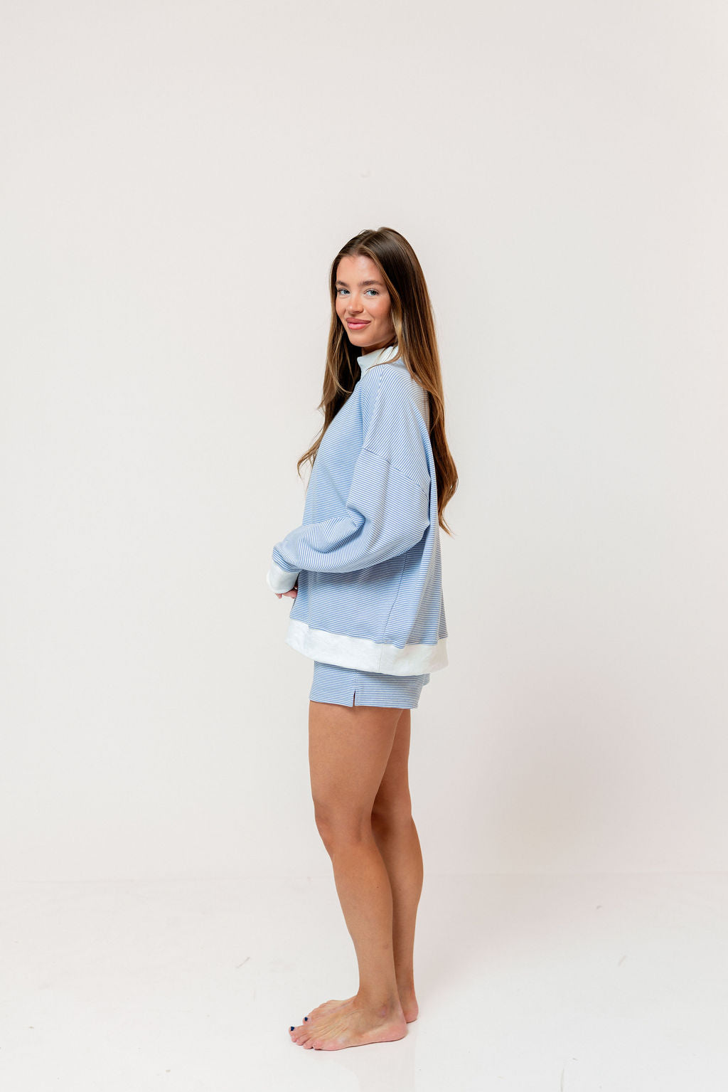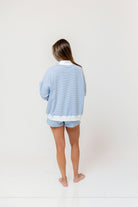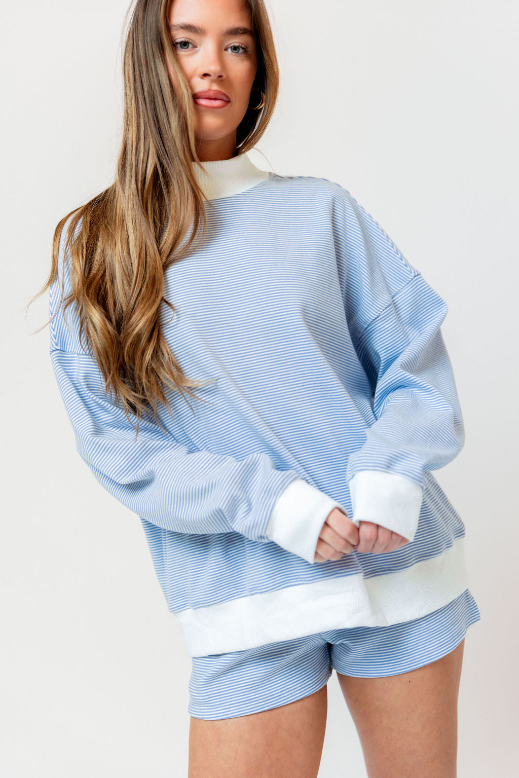 Nate Mock Neck Sweatshirt and Short Set in Light Blue/Cream Stripe