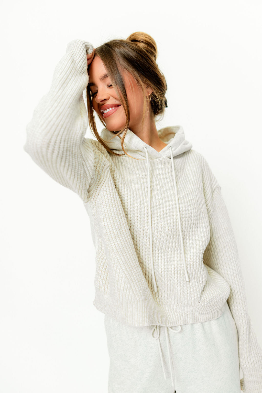 Caelynn Mixed Media Hoodie and Pants Set in Oatmeal