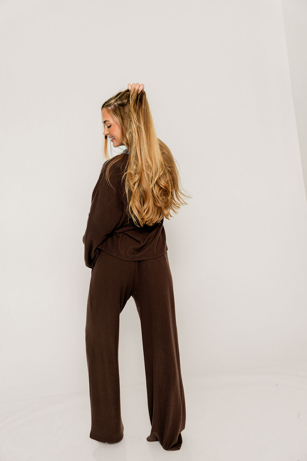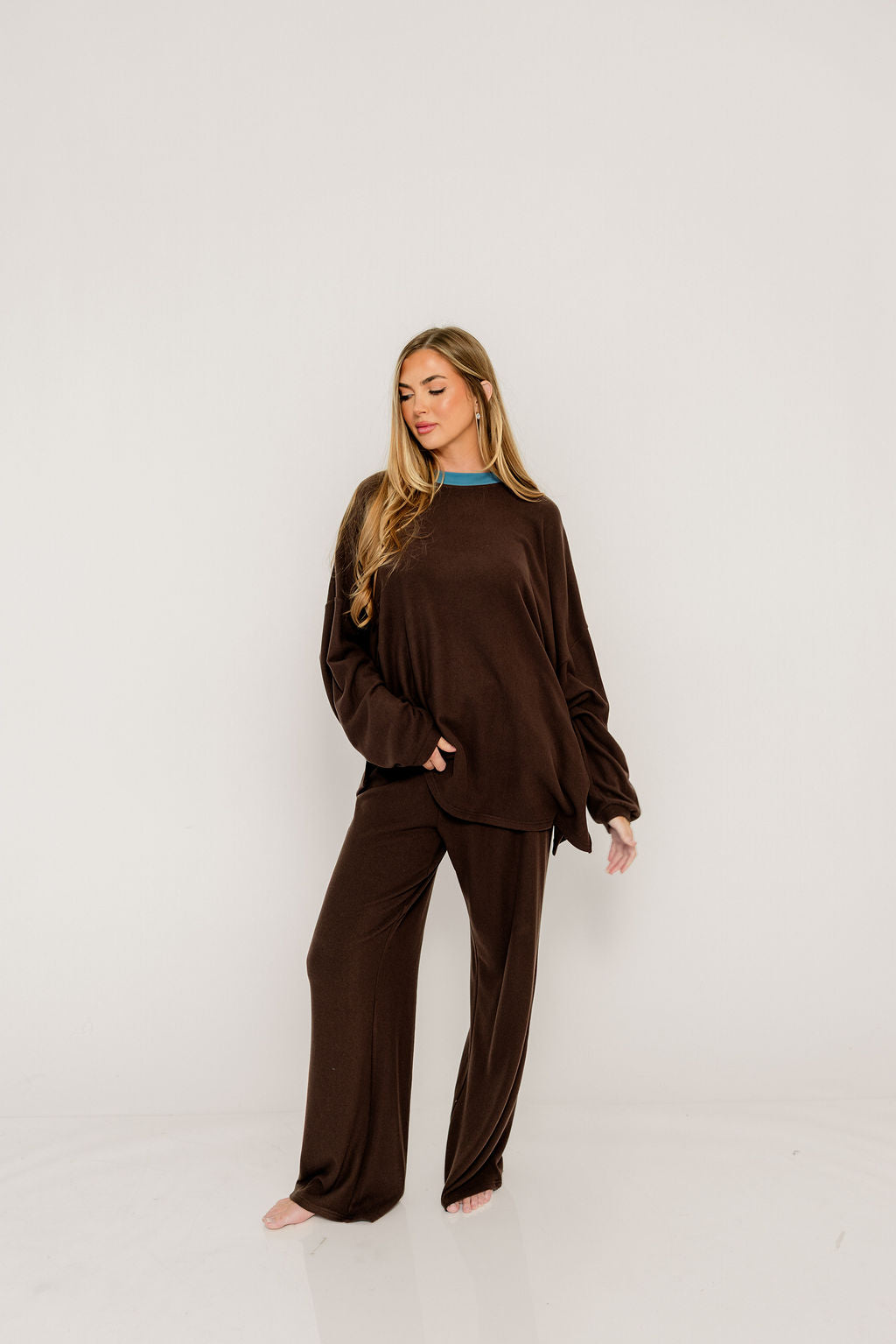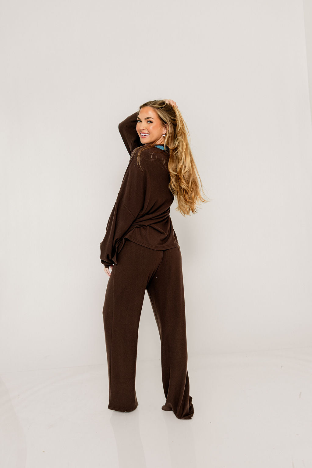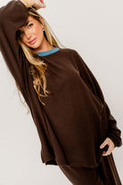 Naomi Oversized Fleece Long Sleeve Top in Brown