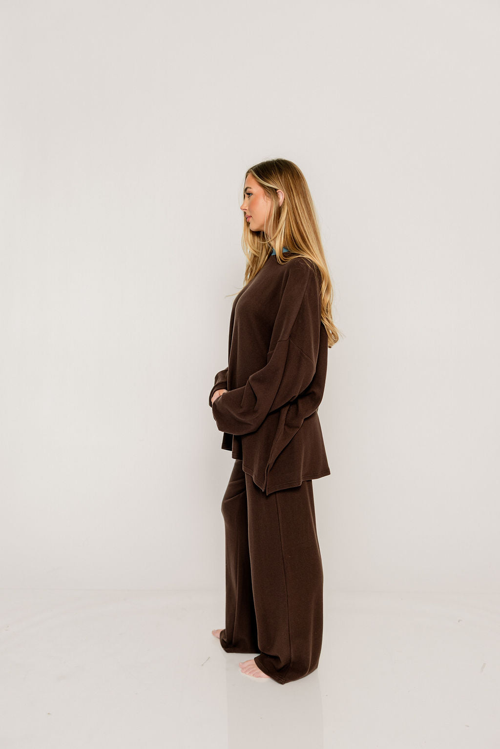 Get cozy (and trendy) with our new Naomi Top! This top is oversized yet sophisticated, the perfect top for pairing with your favorite boxer shorts or the matching Campbell Fleece Pants.