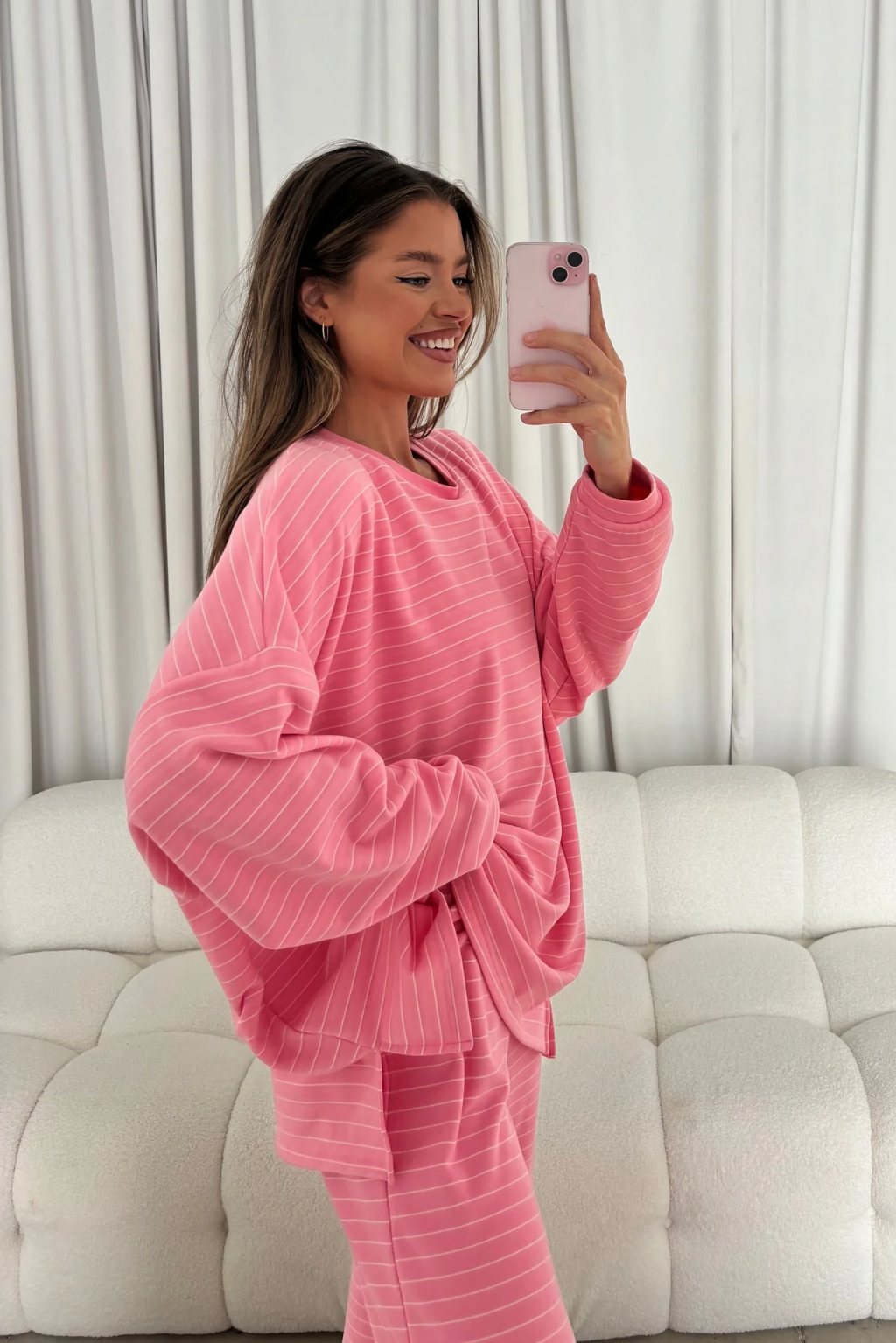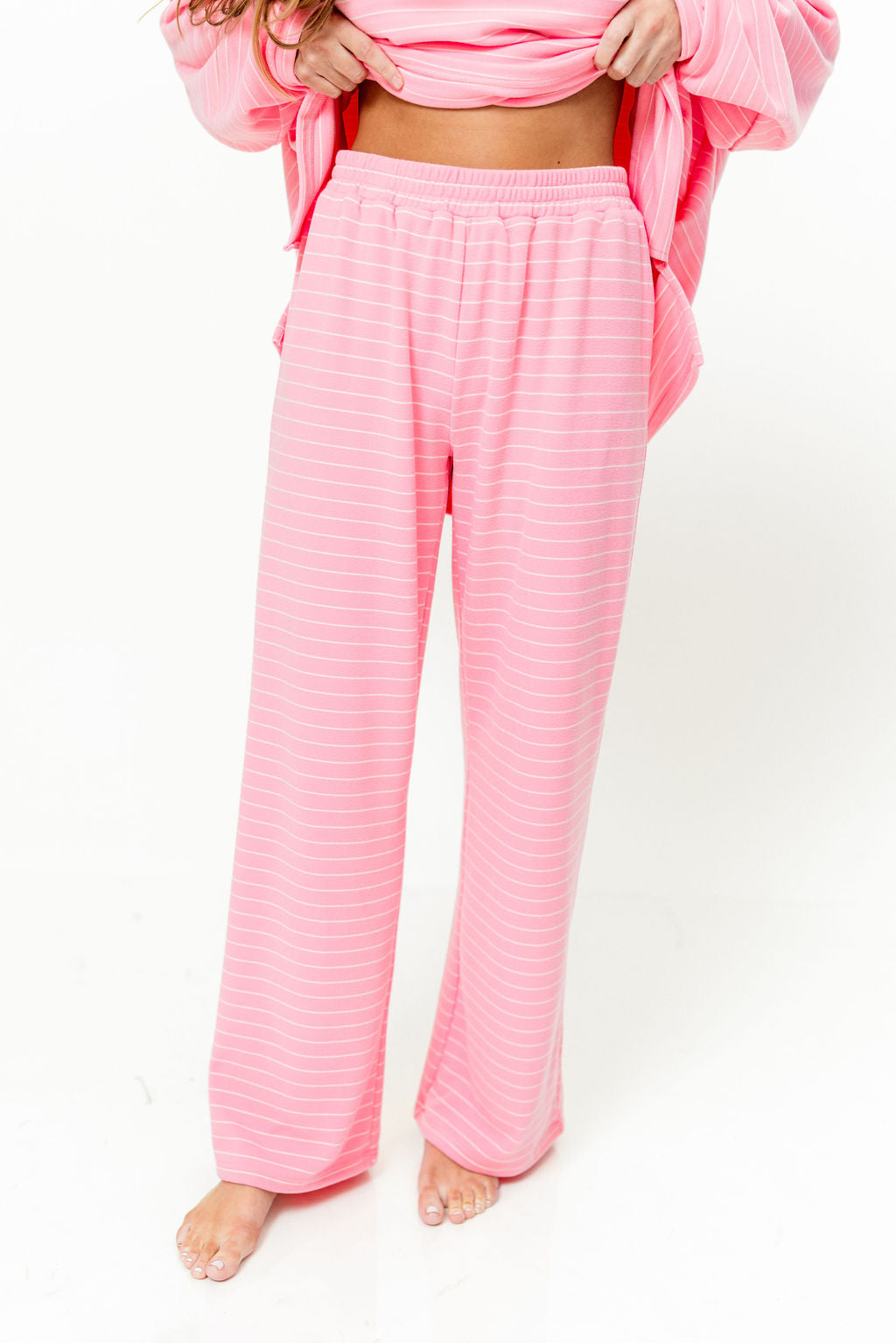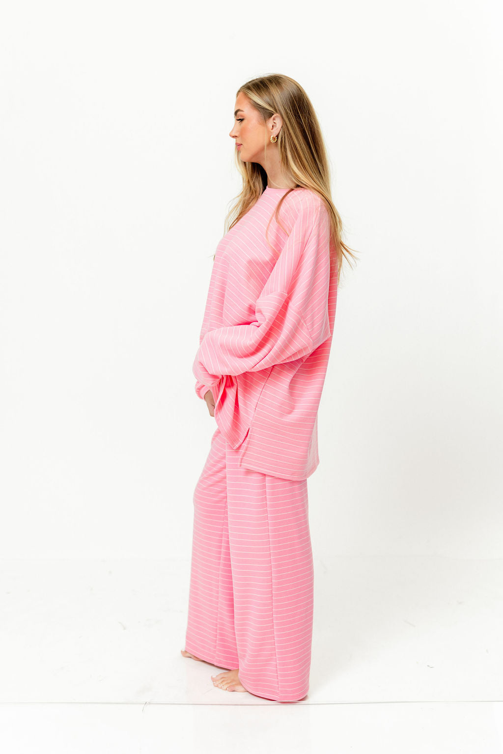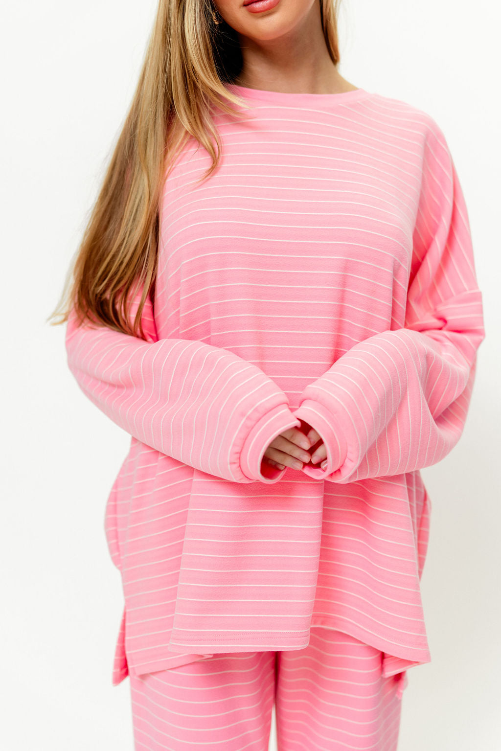 Naomi Striped Fleece Oversized Long Sleeve Top in Pink (Sign up for Feb Restock)