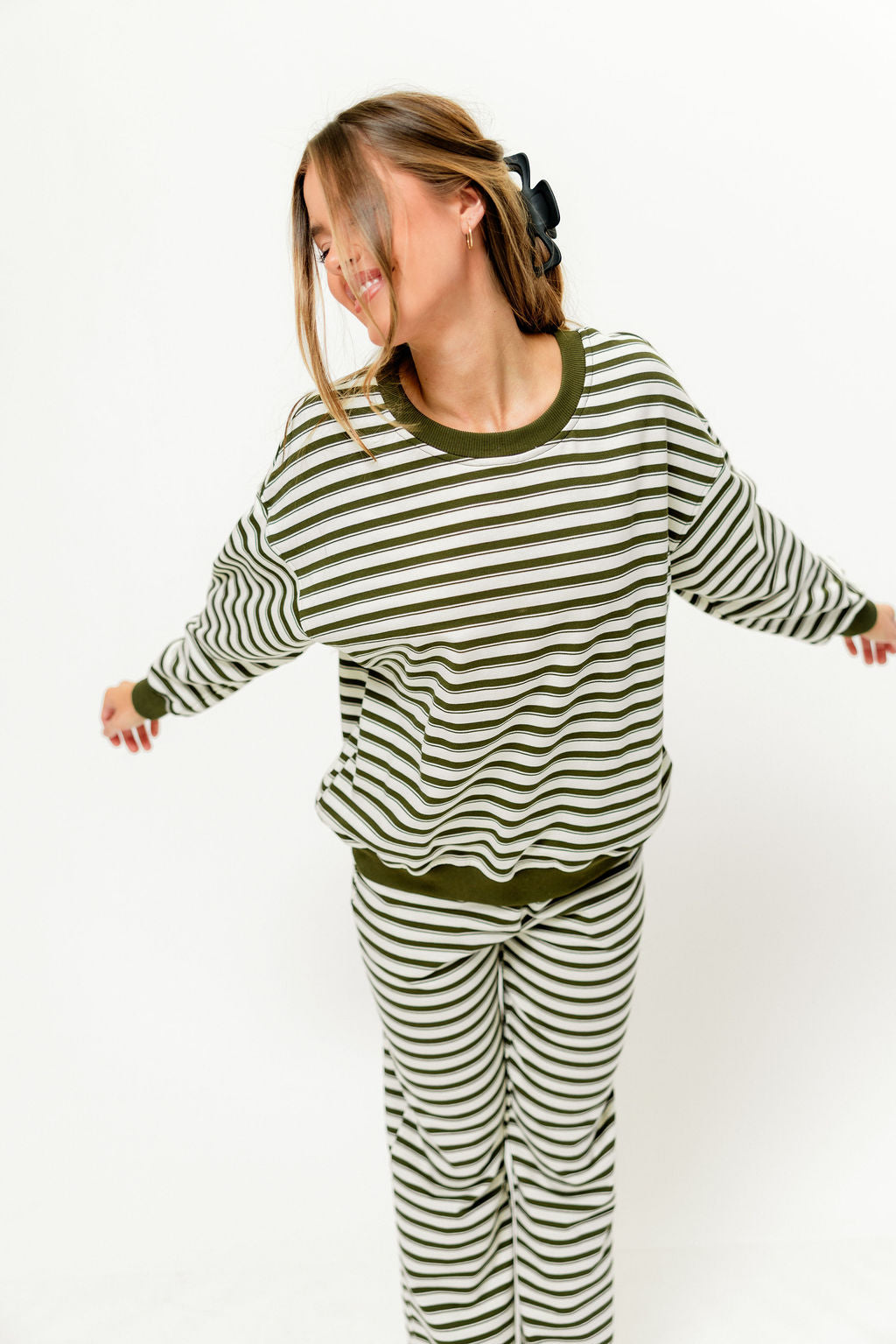 Rudie Sweatshirt and Sweatpants Set in Cream/Green Stripe
