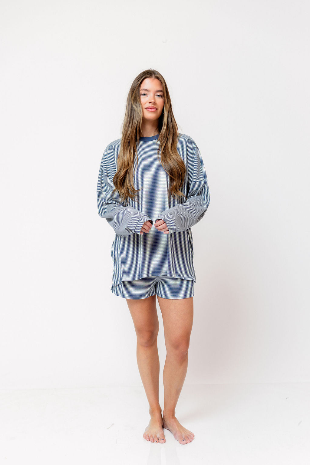 Our newest set might just be our favorite! The Stella Oversized Top is slouchy and beautifully comfortable, the perfect top for wearing night and day; pair it with the matching Maxwell Ribbed Shorts for a no-fuss combination we can't resist.