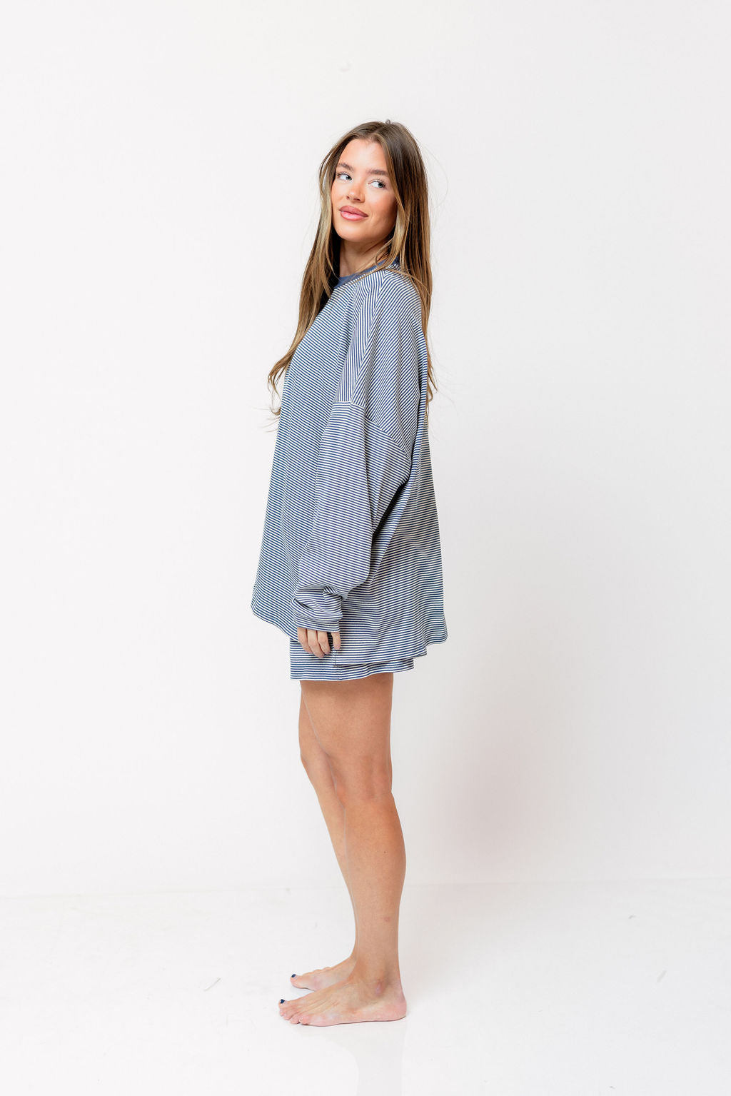 Stella Ribbed Stripe Oversized Top in Blue