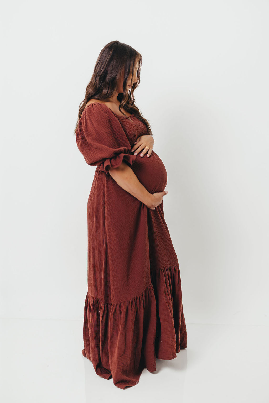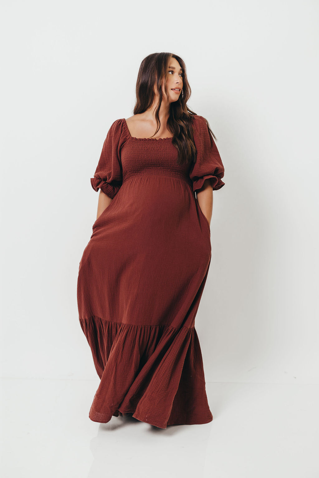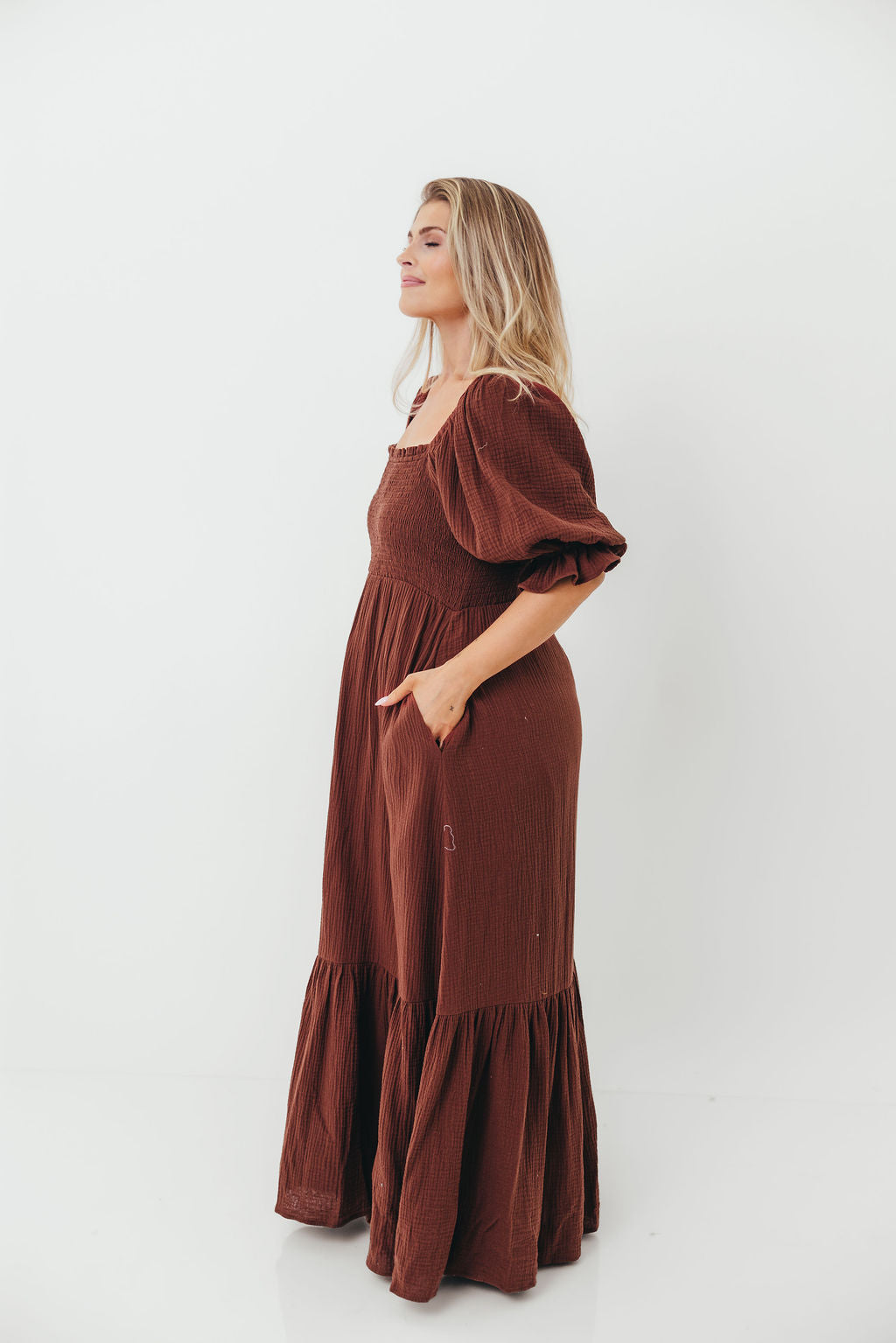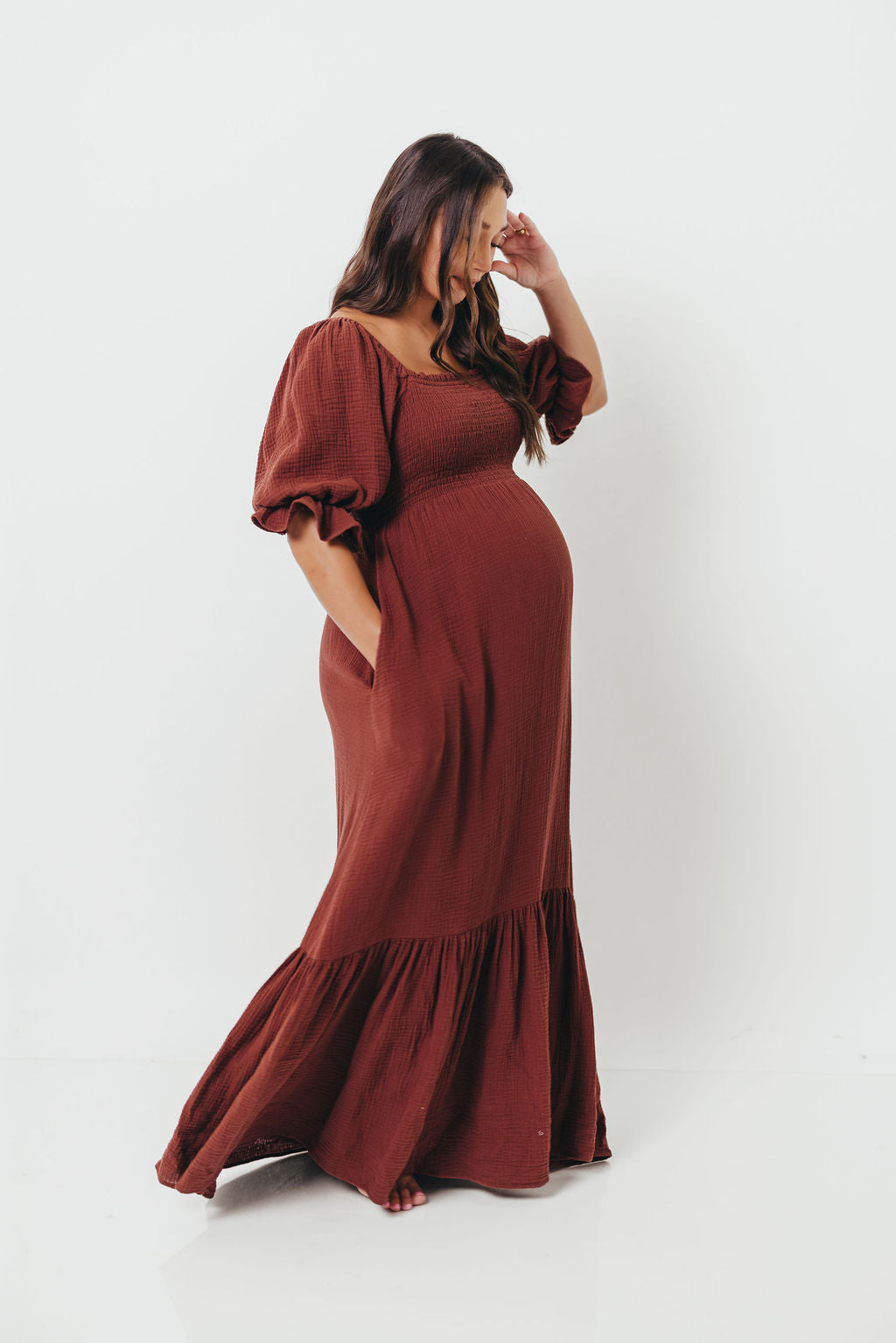 Livvy 100% Cotton Maxi Dress in Rust Brown - Bump Friendly