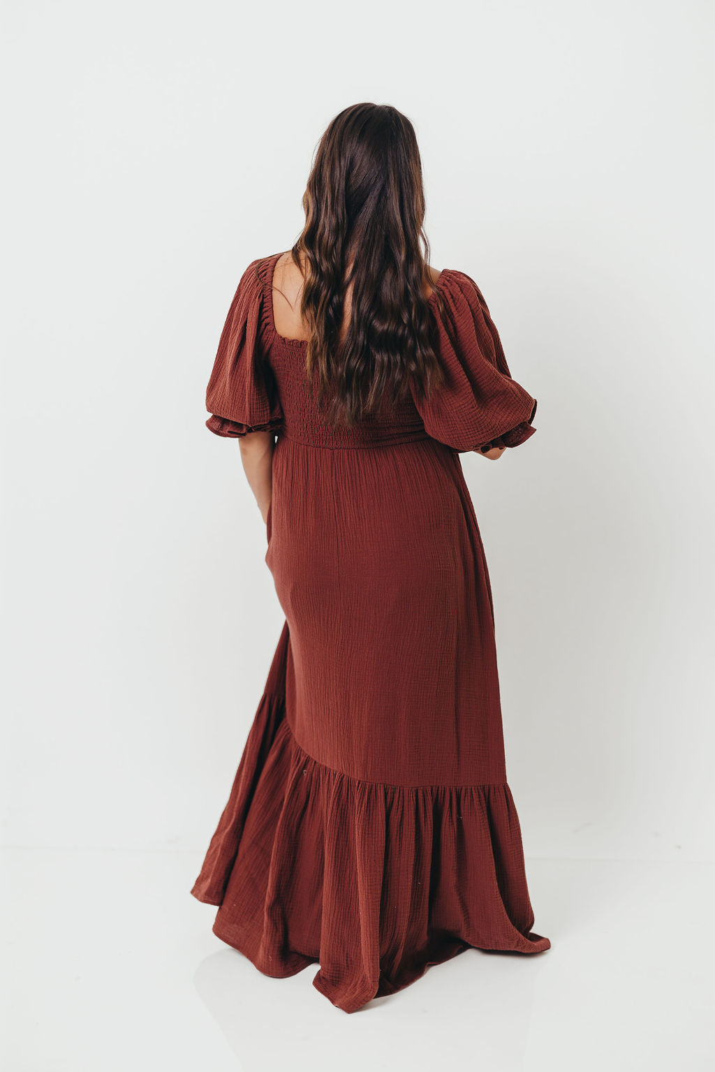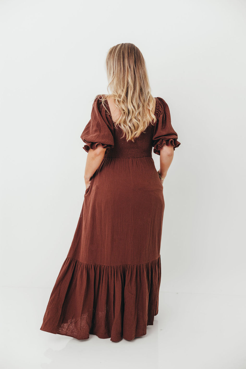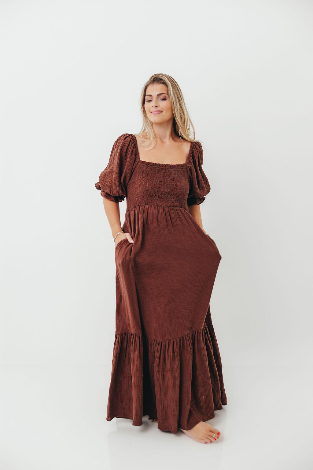 Livvy 100% Cotton Maxi Dress in Rust Brown - Bump Friendly