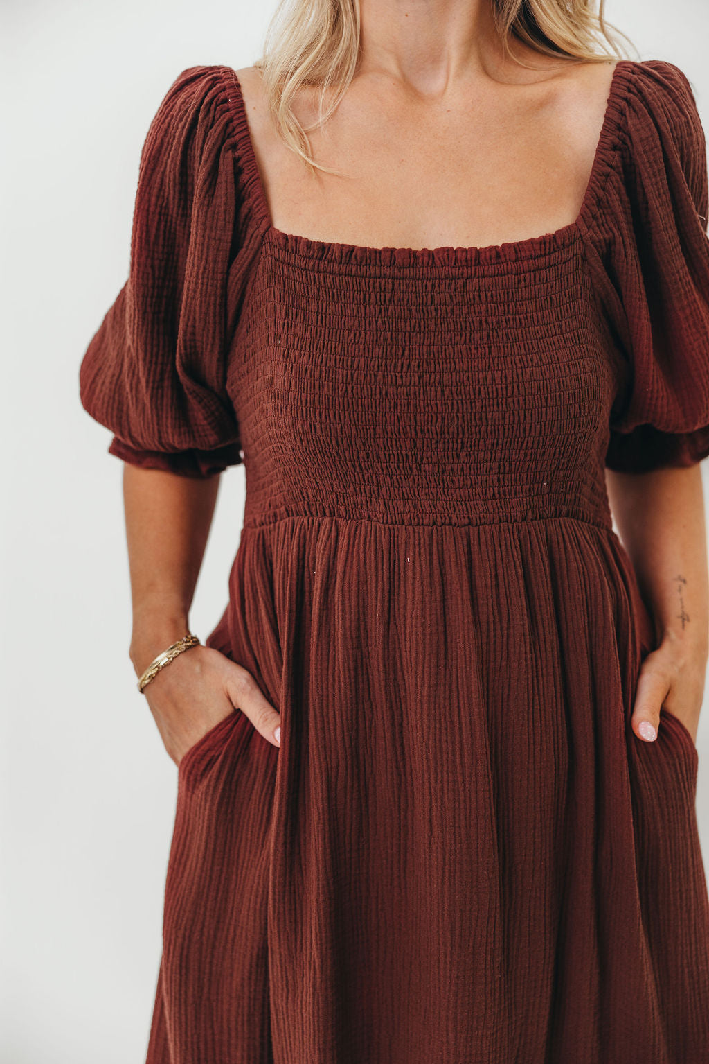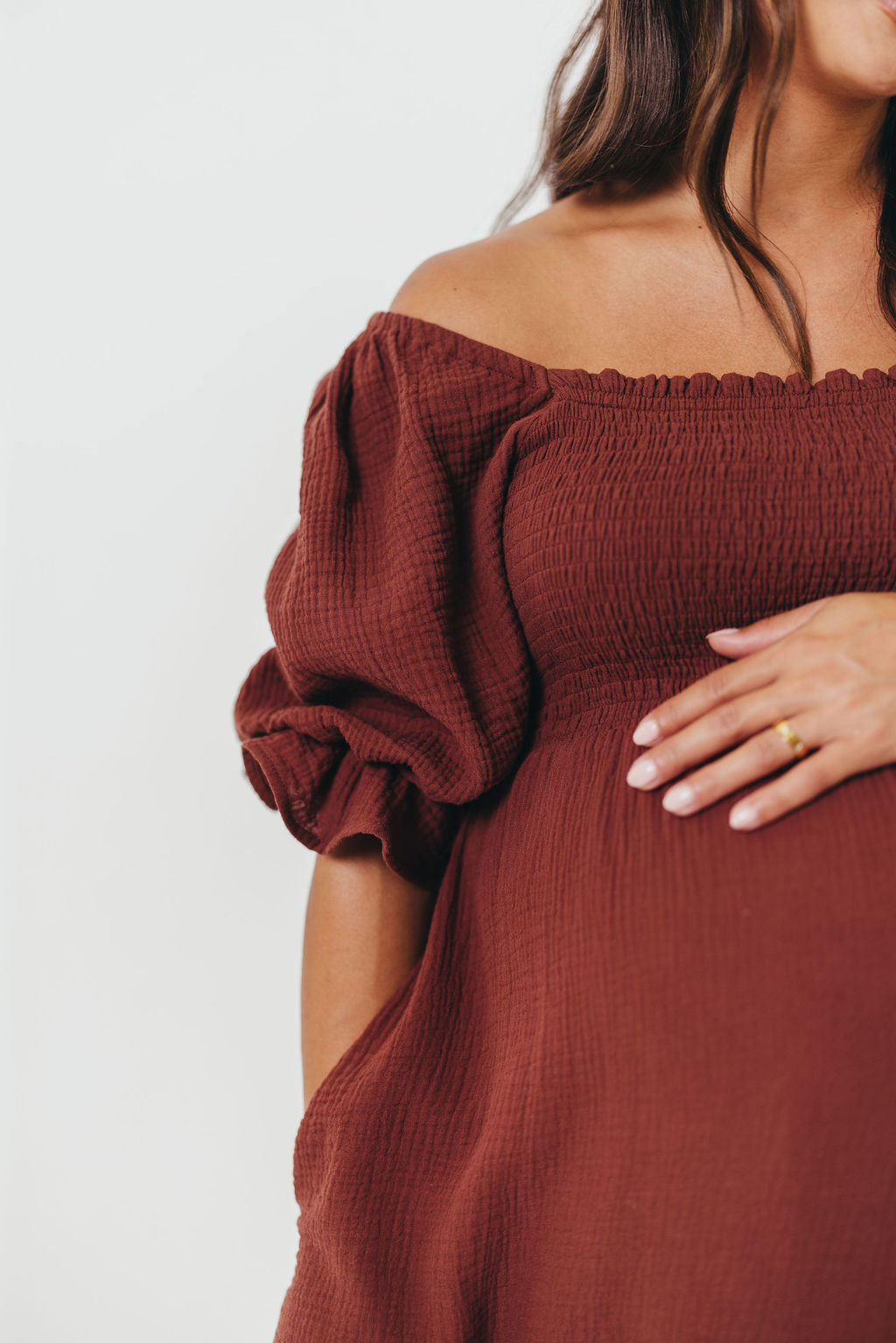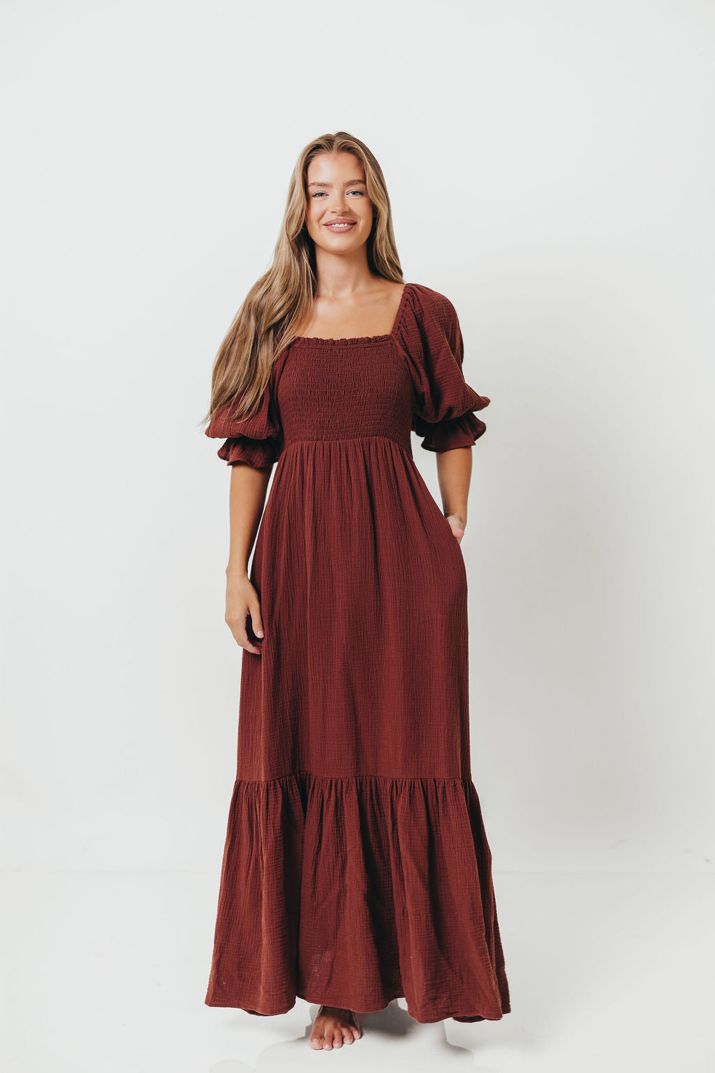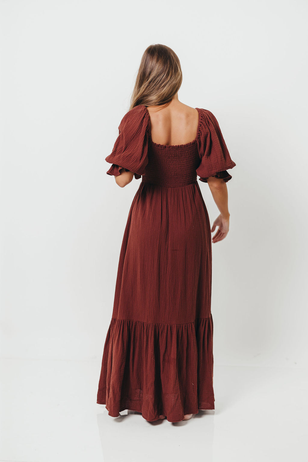 Livvy 100% Cotton Maxi Dress in Rust Brown - Bump Friendly