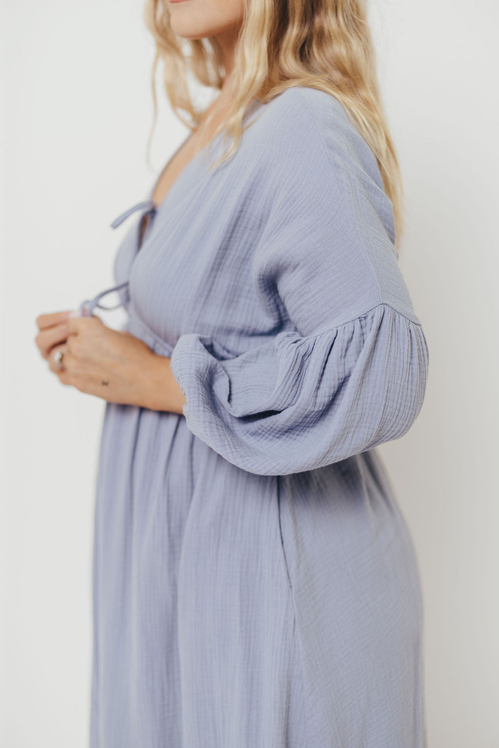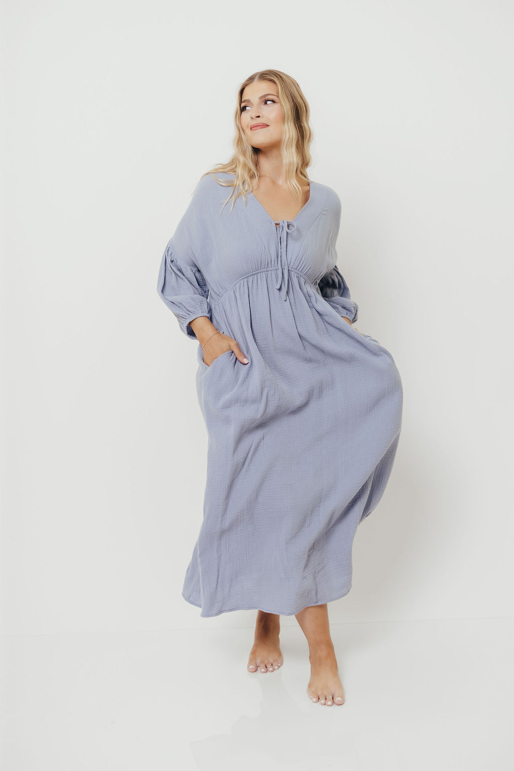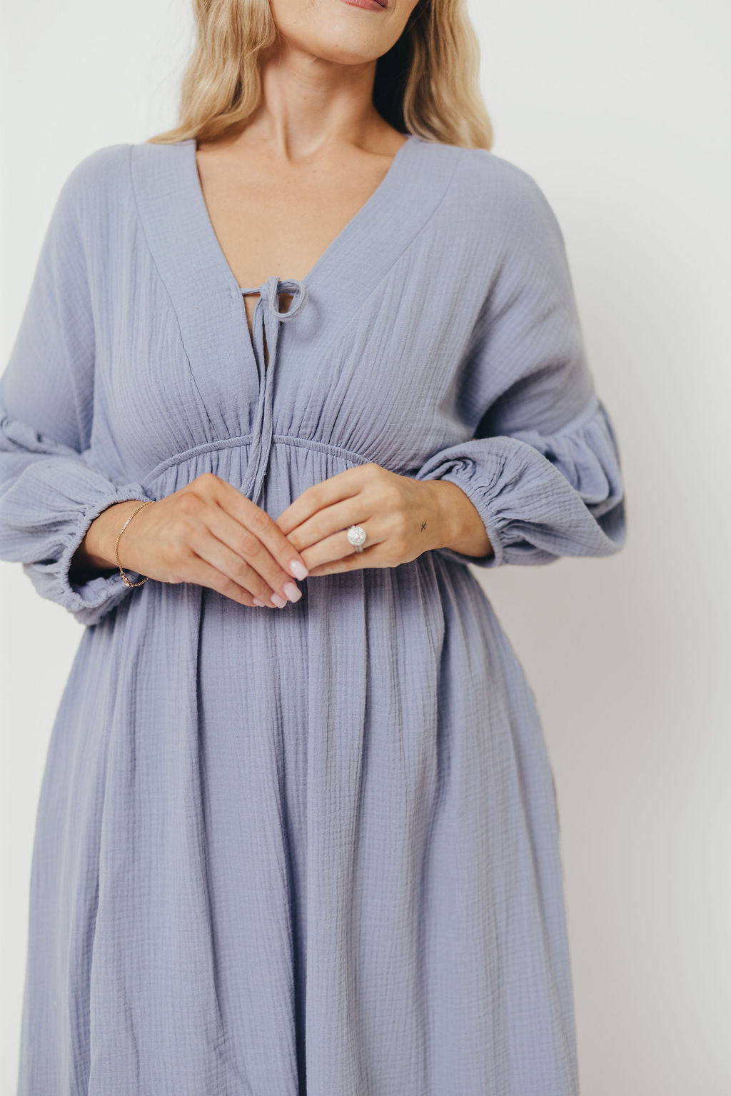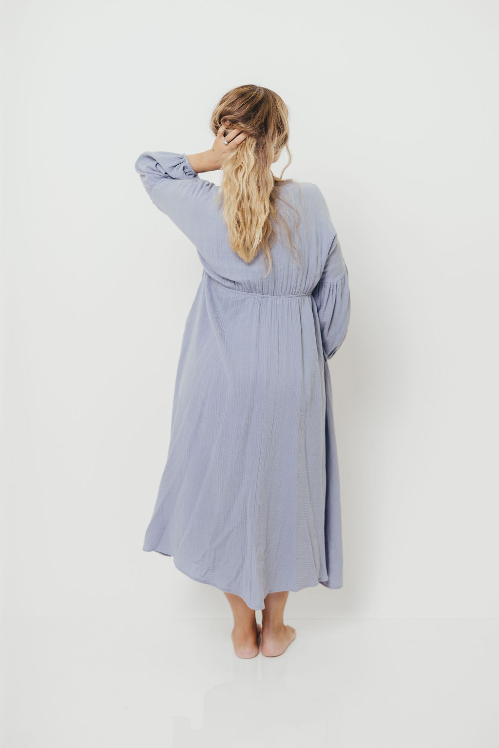 Hunter 100% Cotton Gauze Midi Dress in Blue - Bump Friendly