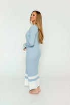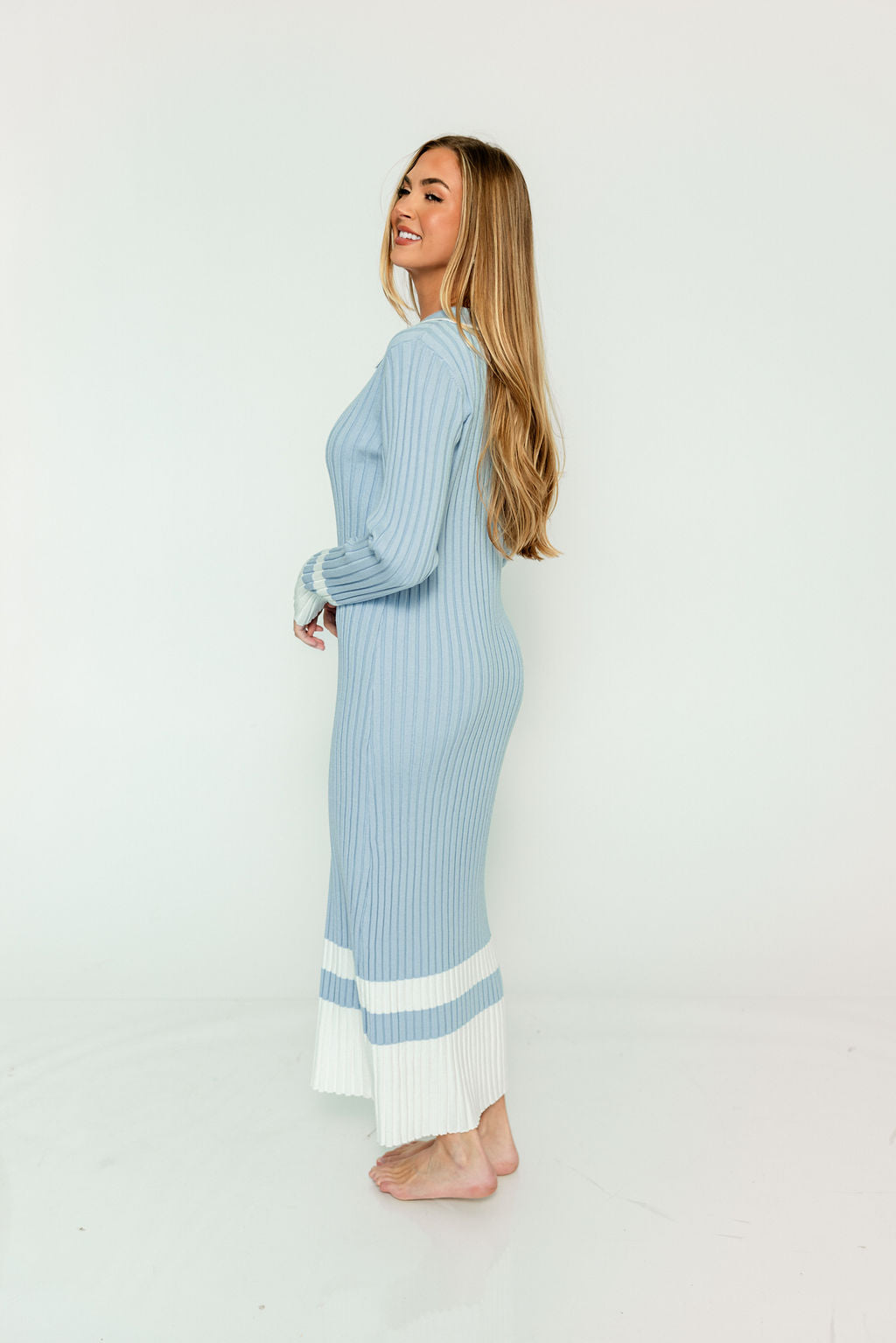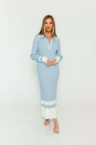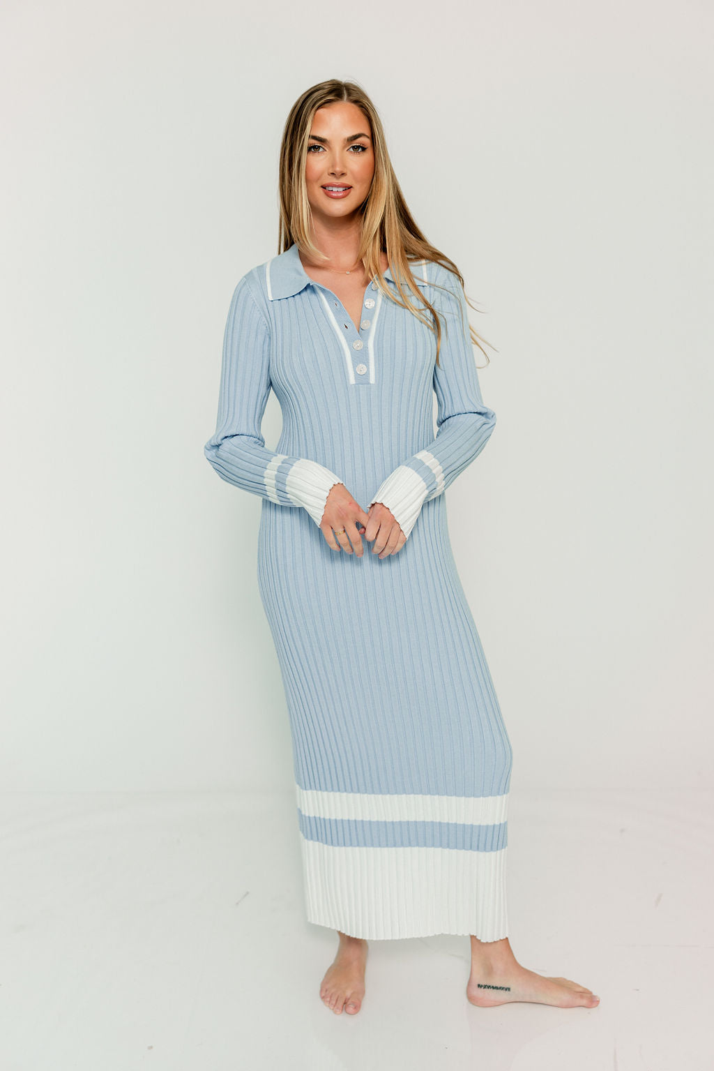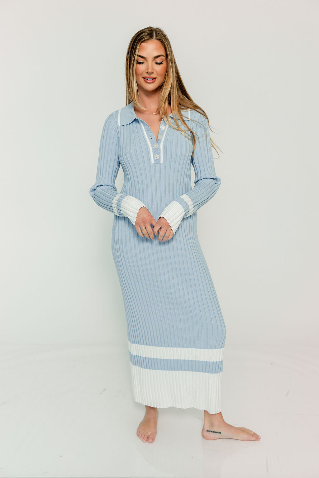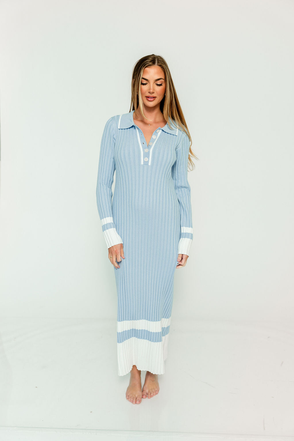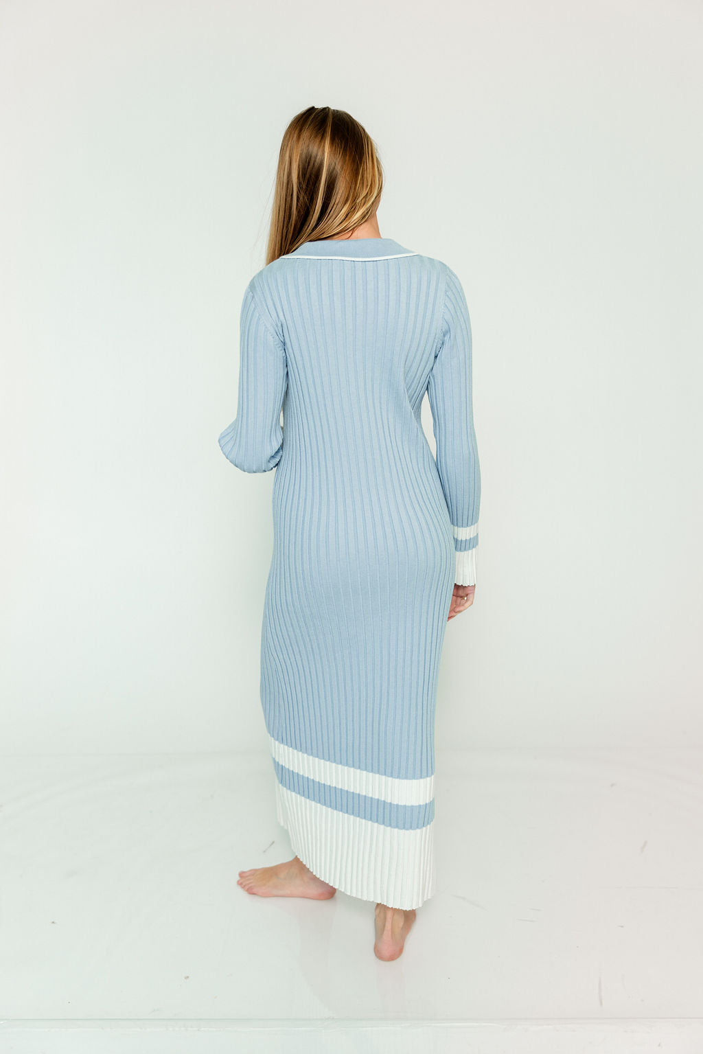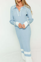 Kris Colorblock Polo Rib-Knit Maxi Dress in Sky