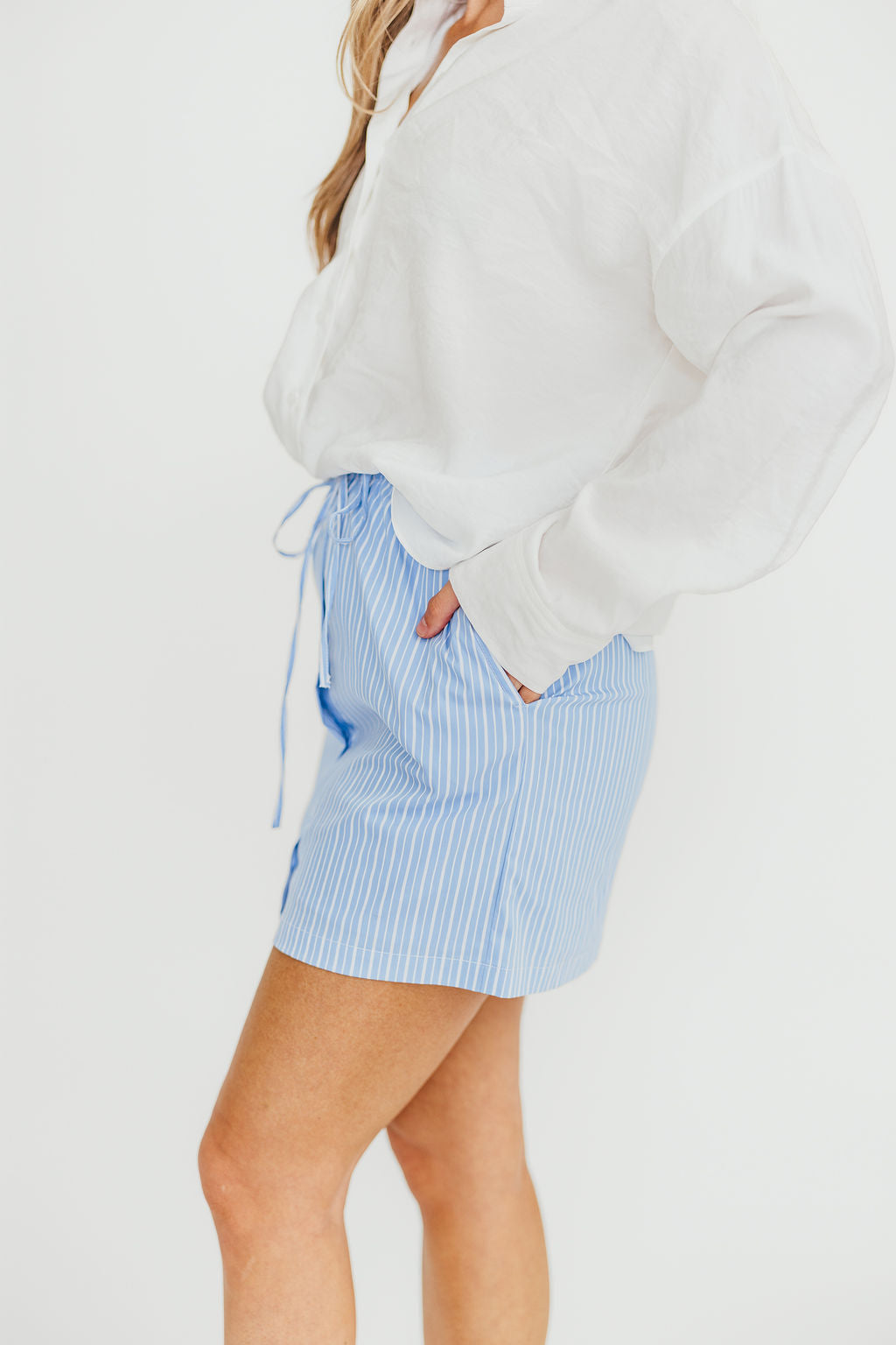 Sia Striped Poplin Drawstring Skort in Light Blue *Final-Sale*