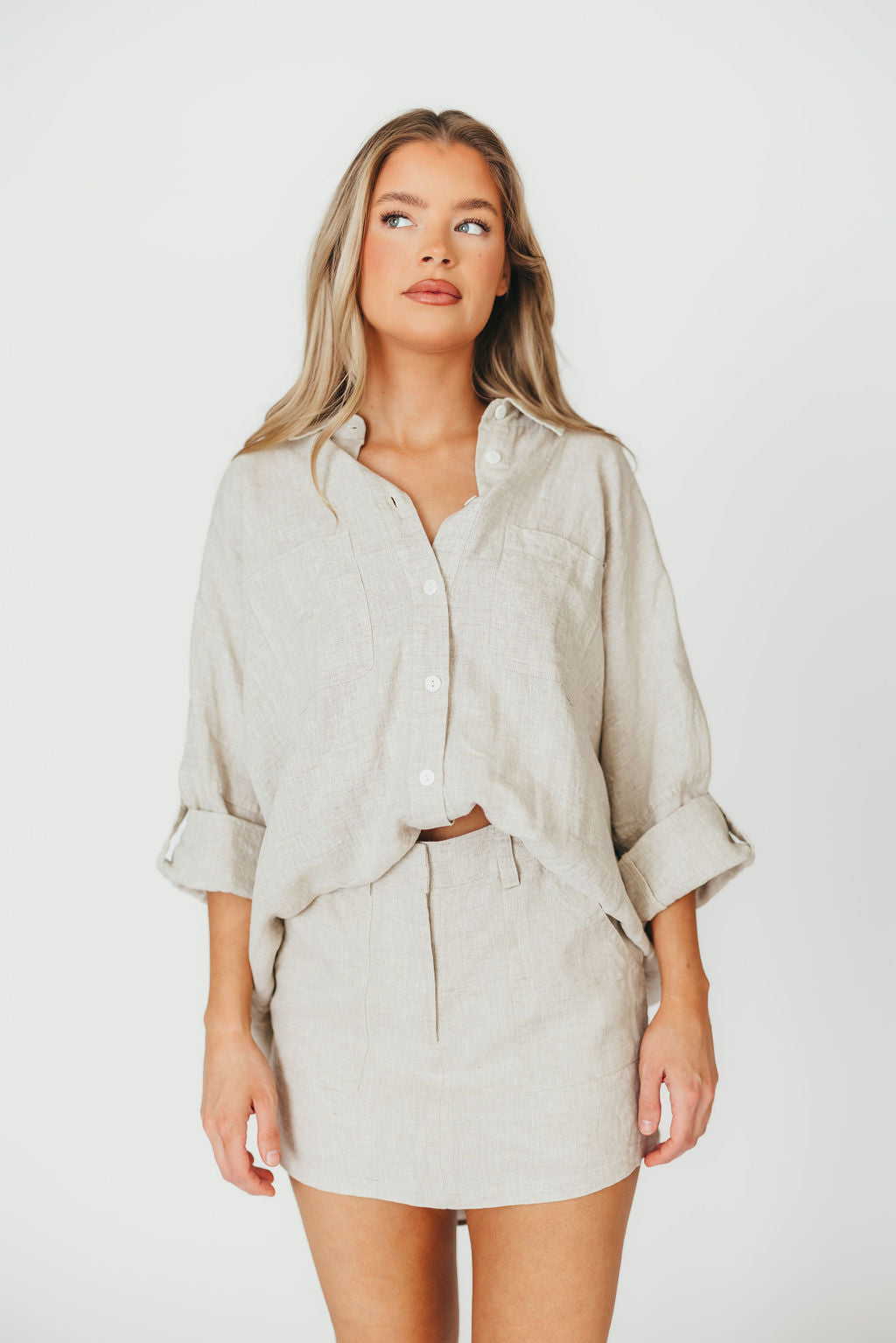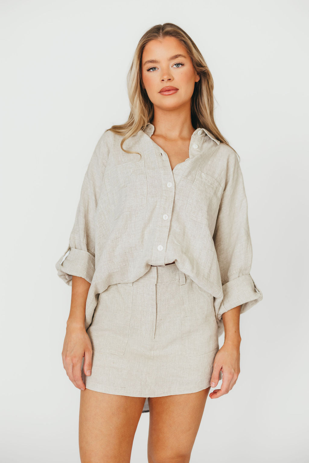 GARMENT DETAILS: Lightweight linen skort with belt loops and pockets.