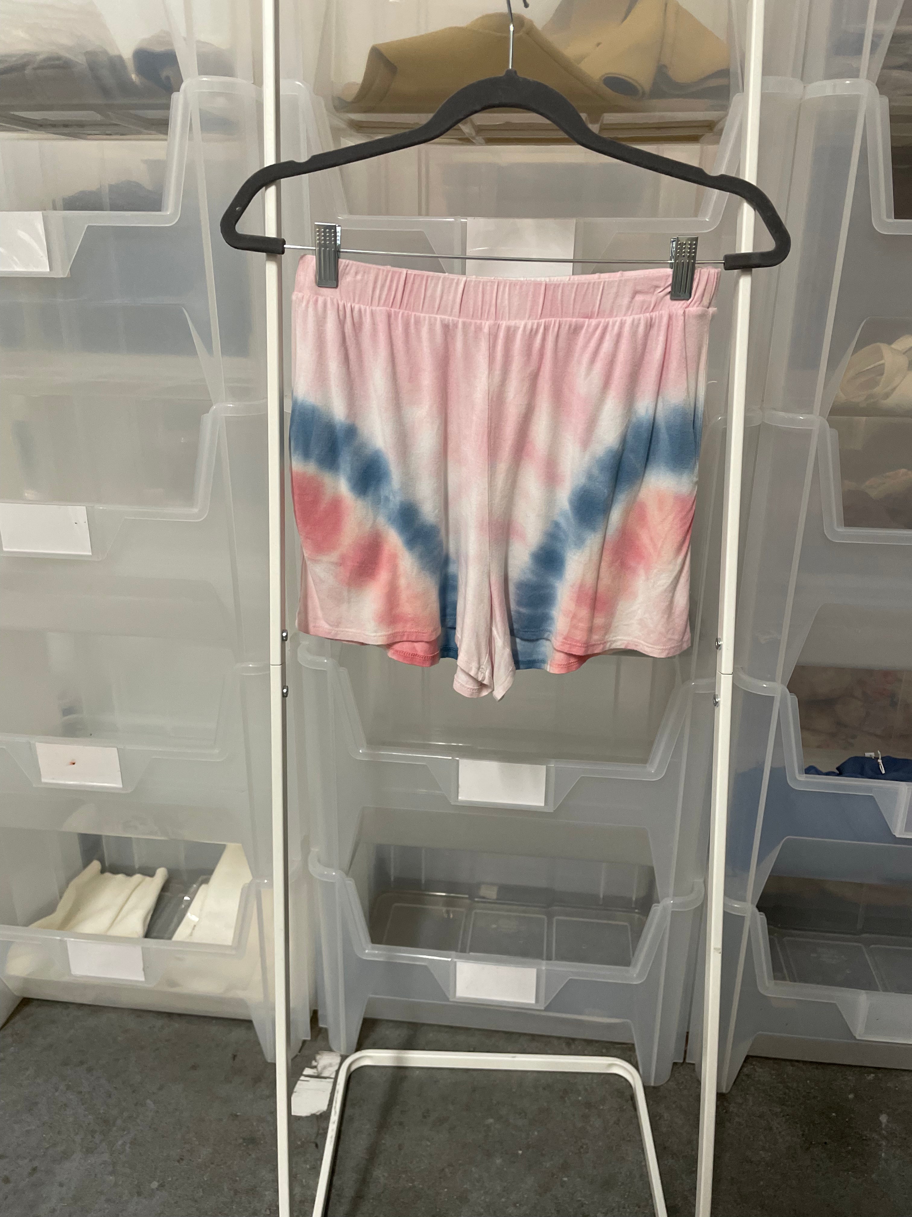 GARMENT DETAILS: Relaxed lounge shorts with elasticized waistband, in a muted pastel tie-dye print.