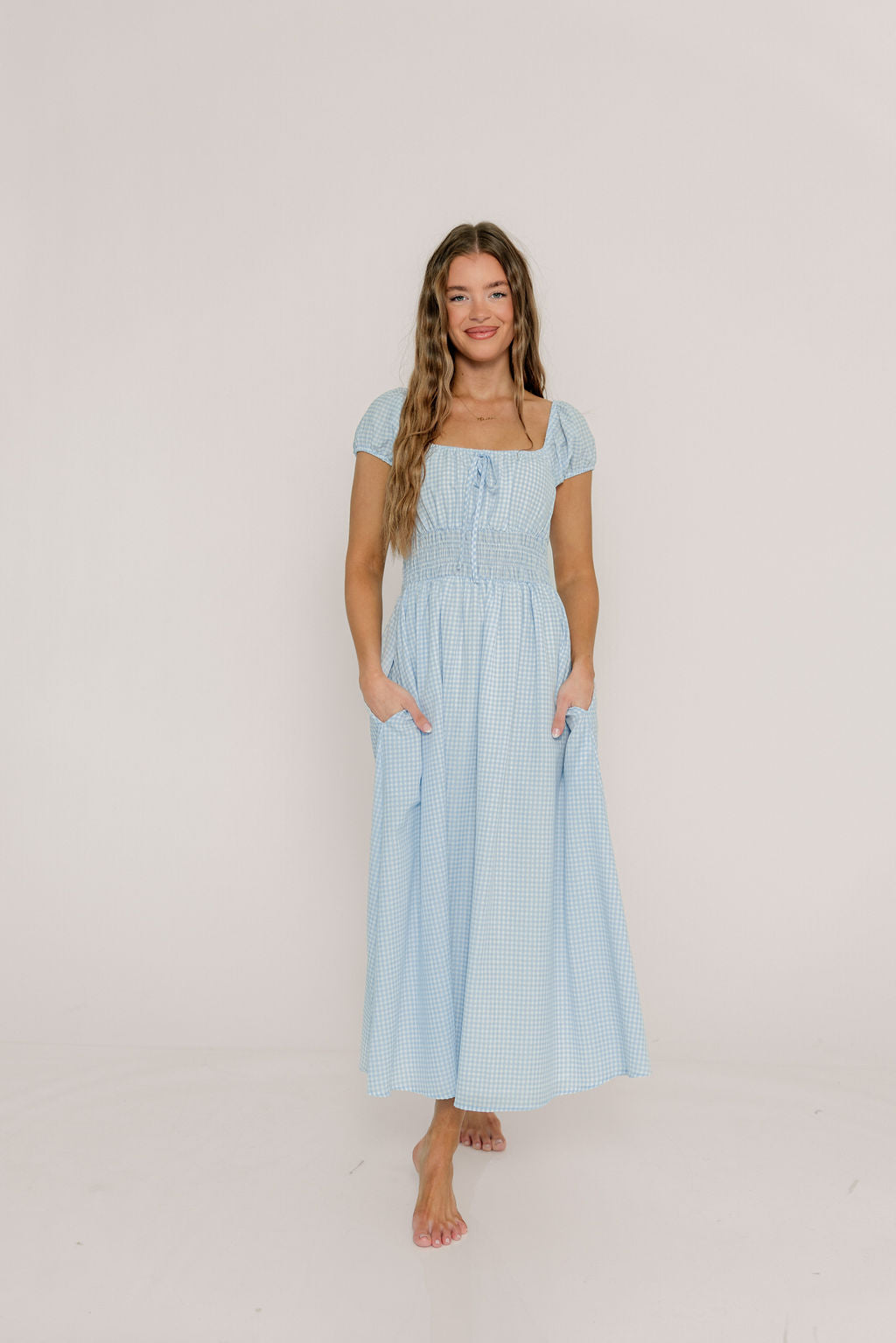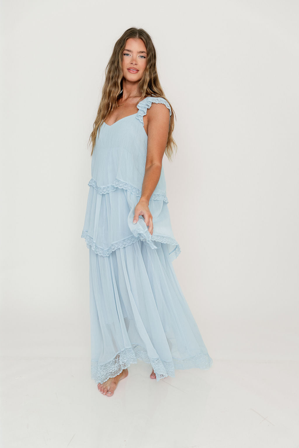 Desi Maxi Dress in Light Blue - Bump Friendly for Early Maternity