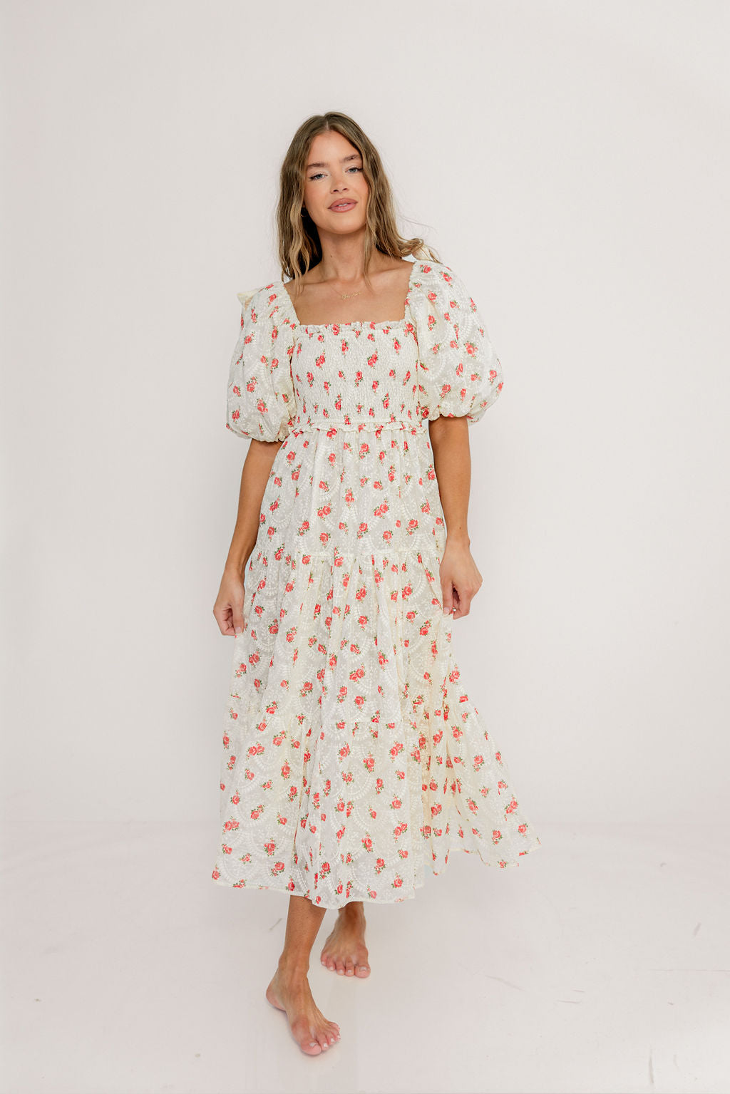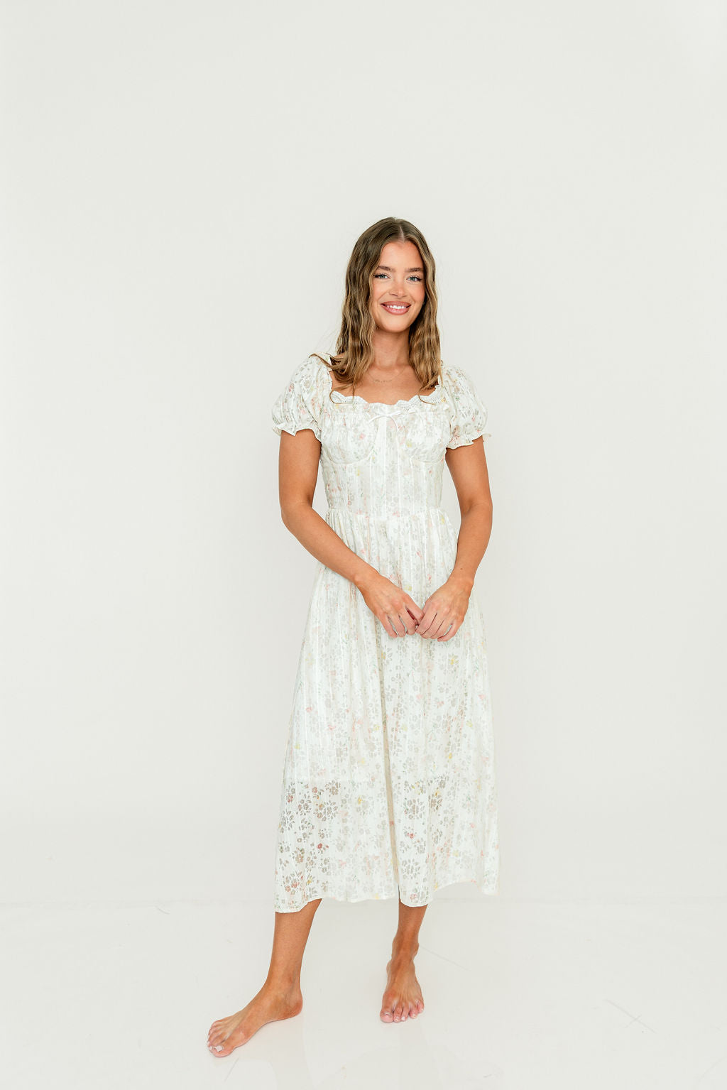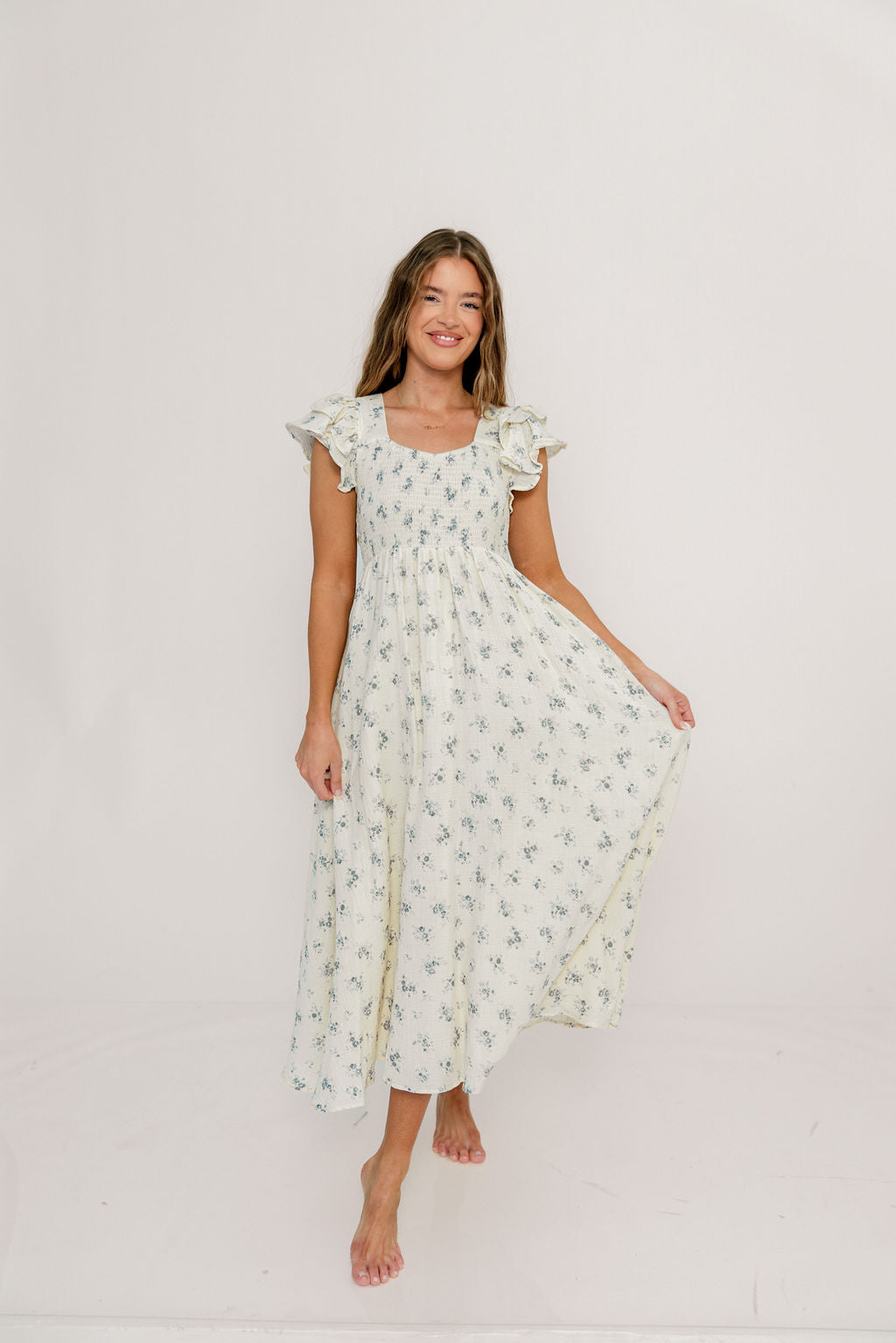 Nya 100% Cotton Midi Dress in Cream/Green Floral *3/19 PRE-ORDER*