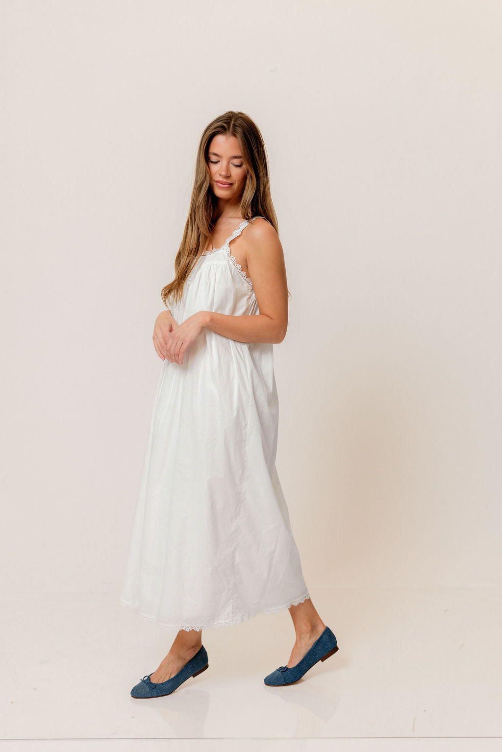 Hunter 100% Cotton Midi Dress with Lace Trim in Ivory - Bump Friendly