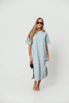 GARMENT DETAILS: Super soft t-shirt dress with crewneck, relaxed short sleeves, and dual side slits.
