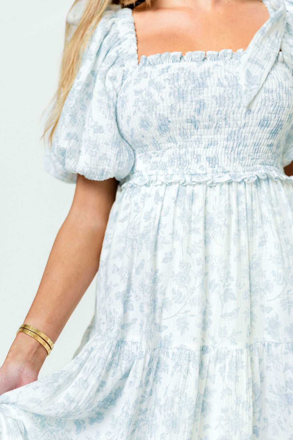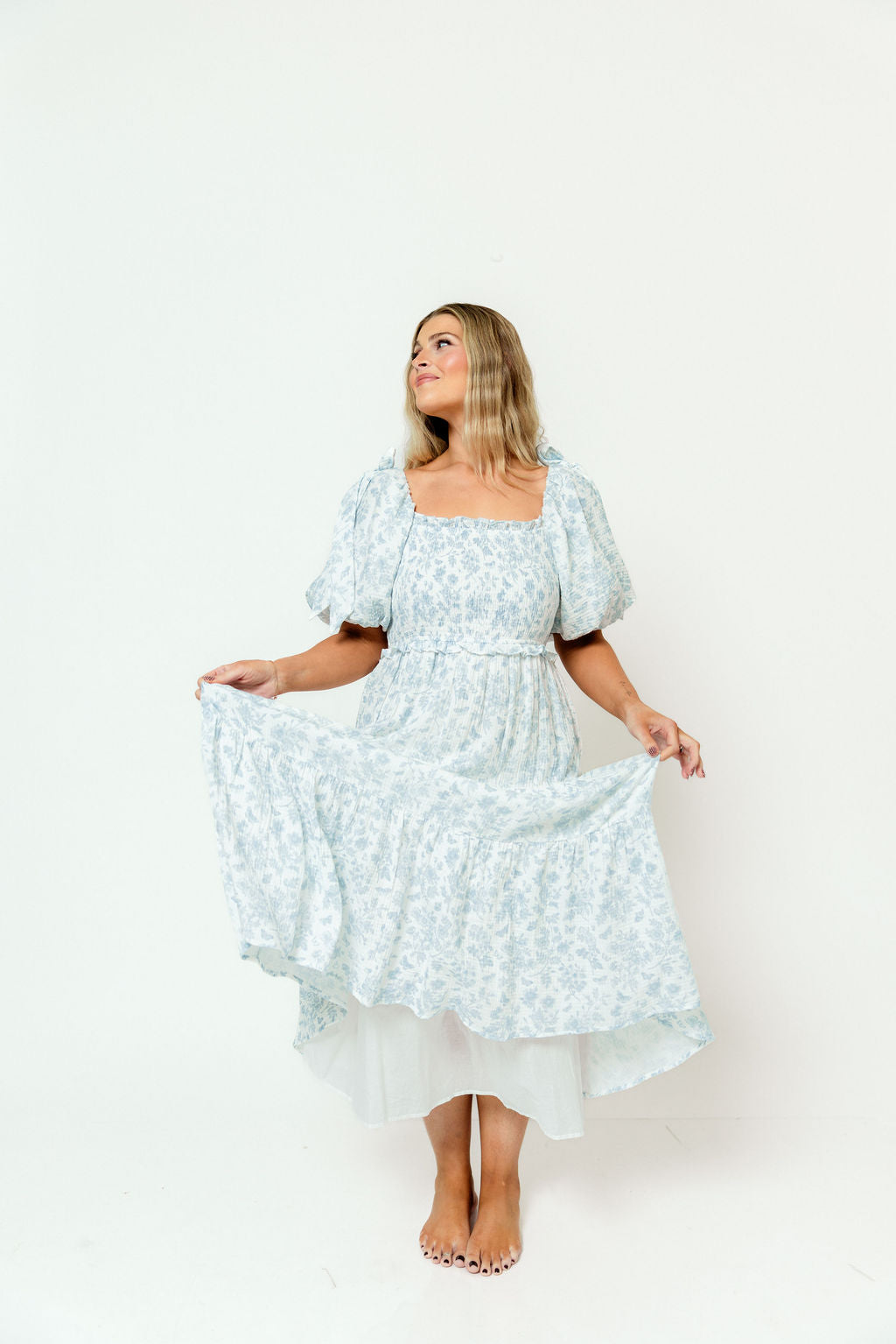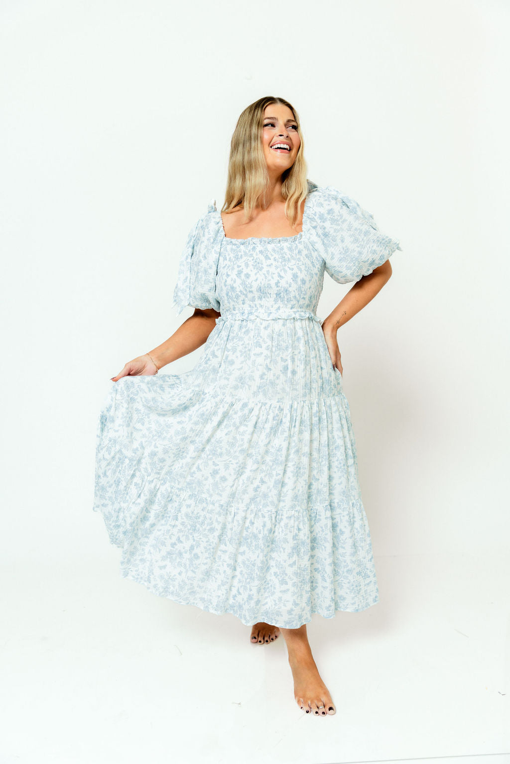 Elena 100% Cotton Midi Dress in Garden Blue *12/19 PRE-ORDER*