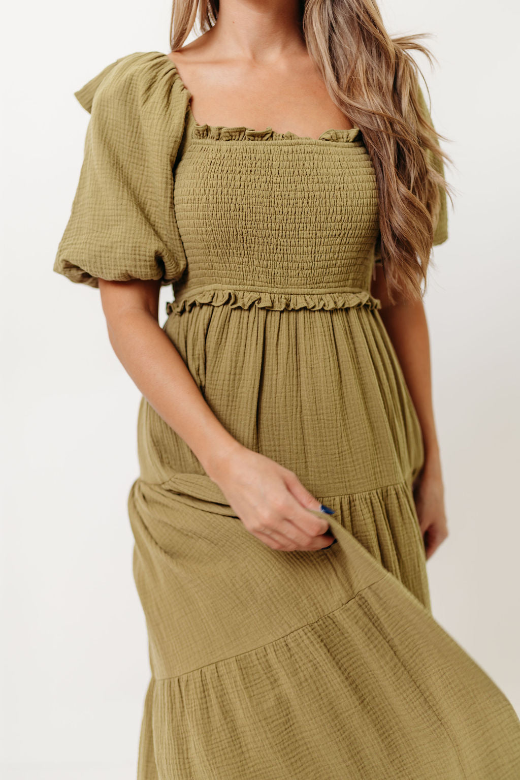 This picture-perfect midi dress is ready for your next special occasion! The Elena Midi features a classic, feminine silhouette that we just adore, plus a comfortable smocked bodice and statement puffed sleeves. It's flattering and comfortable for every body, including expecting mamas!