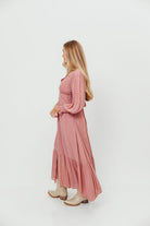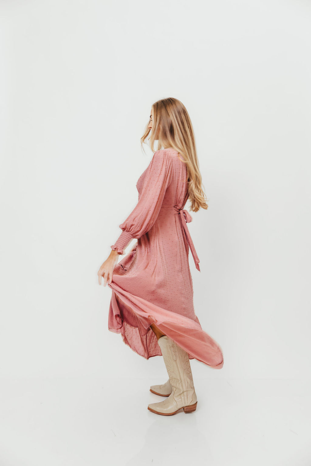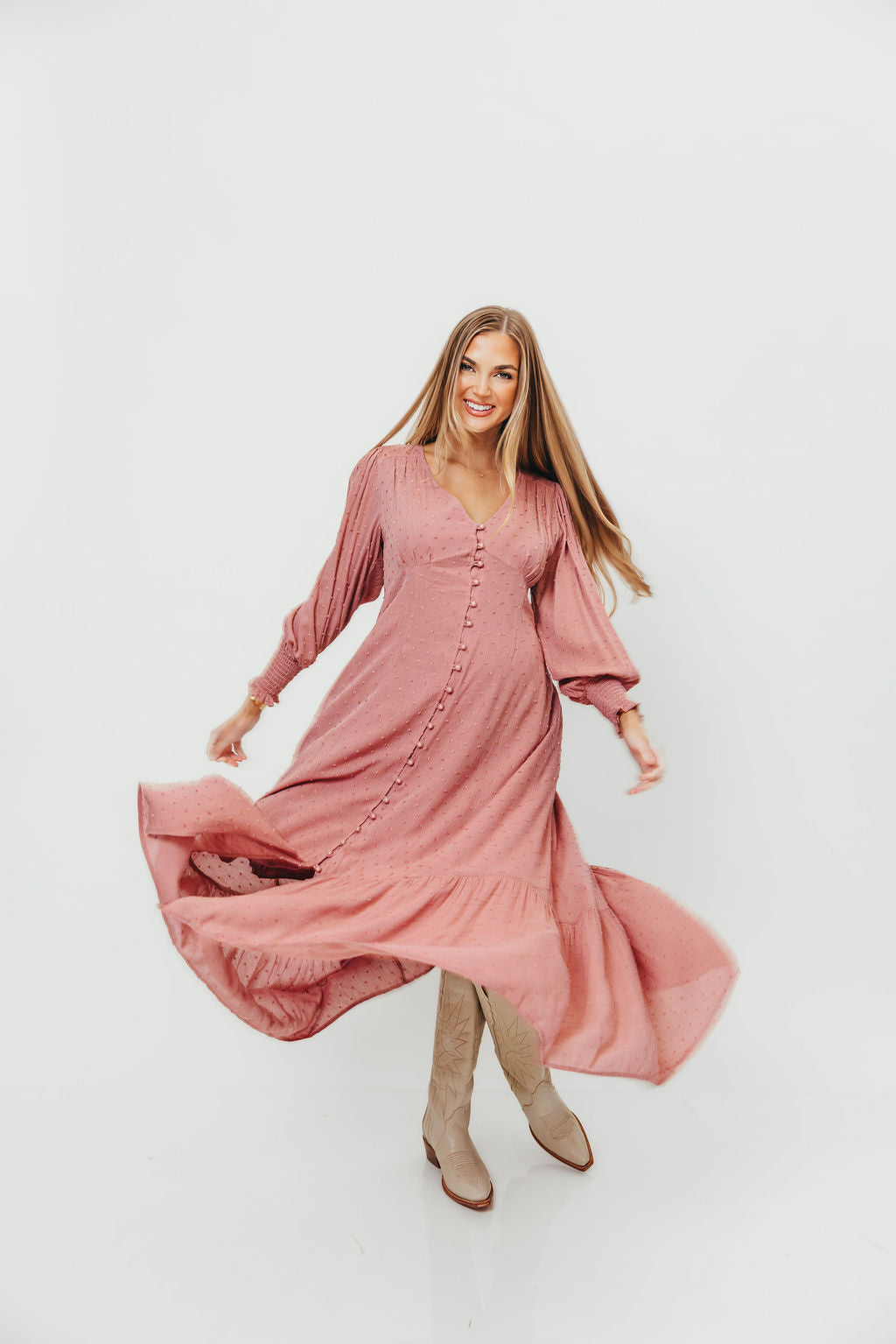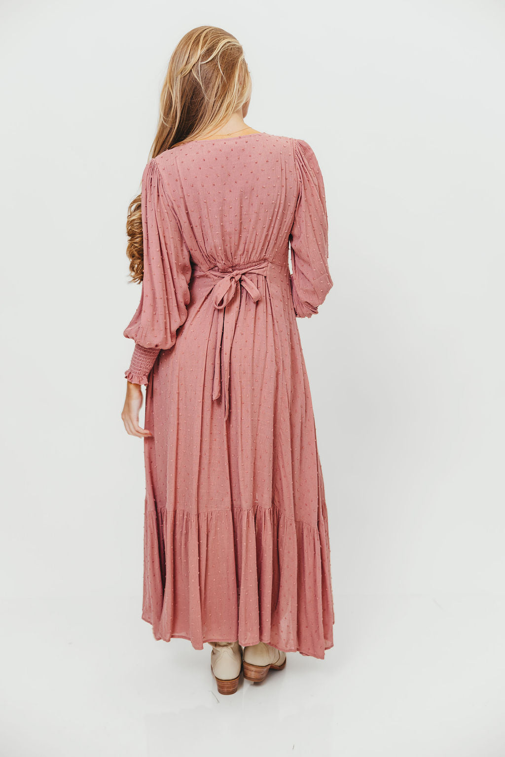Kathani Swiss Dot Button Down Maxi Dress in Rose Tea