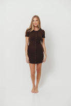 Style her with heels or with your favorite sneakers--the Natalia Mini is as versatile as she is cozy. This chocolate-hued knit mini dress offers cozy comfort and a fitted silhouette, perfect for layering under chunky cardigans.