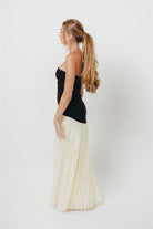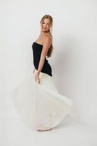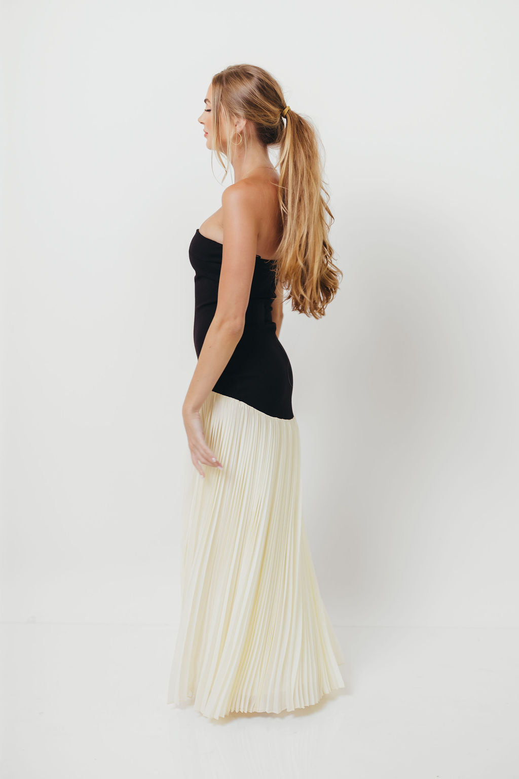 Litzy Strapless Fit Bodice Pleated Skirt Mix Maxi Dress in Cream