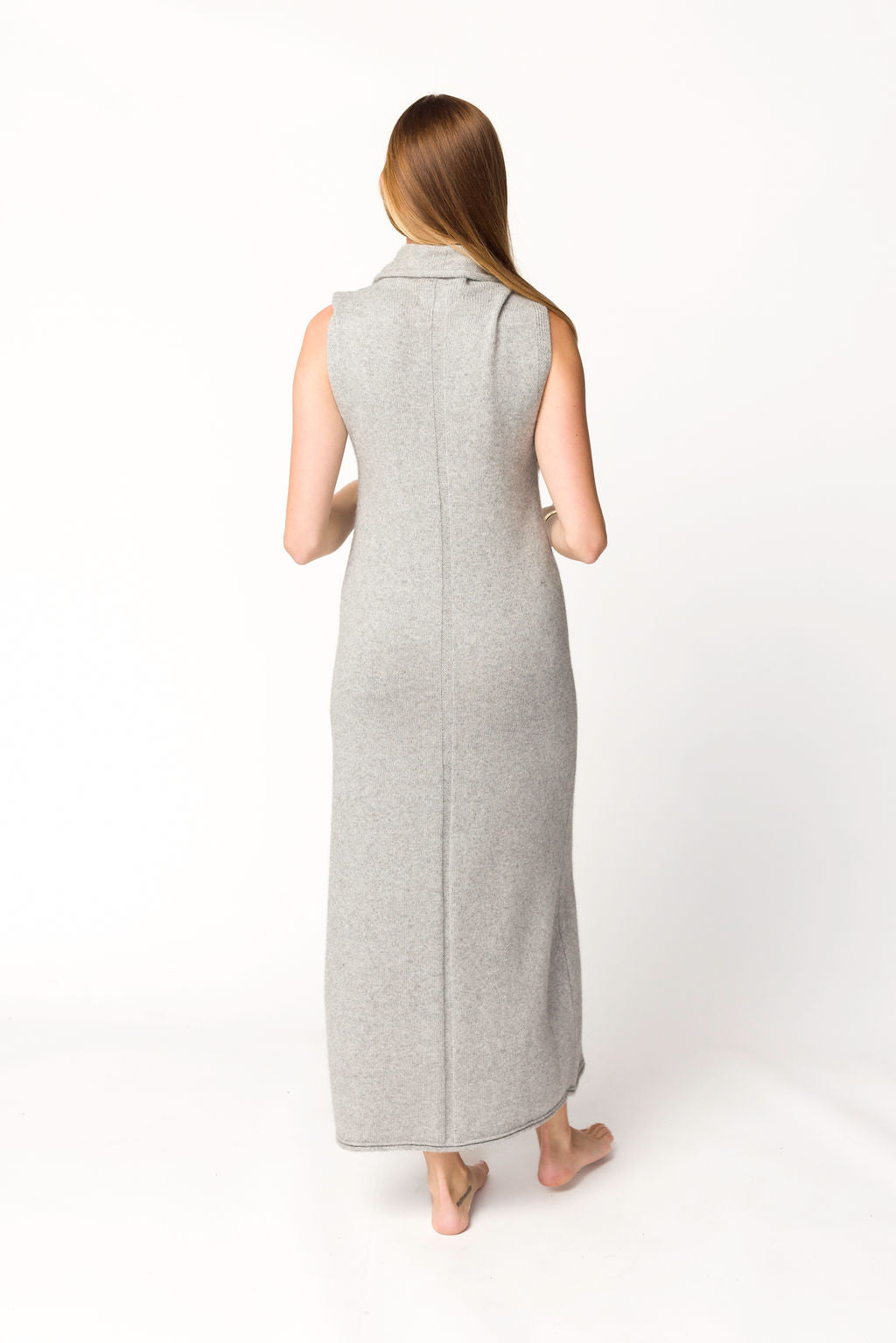 GARMENT DETAILS: Luxuriously soft wool-blend knit dress with sleeveless bodice, turtleneck, and fitted silhouette.