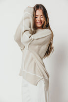 Shannon Ribbed Knit Exposed-Seam Oversize Sweater in Oatmeal