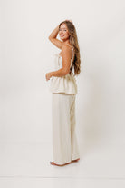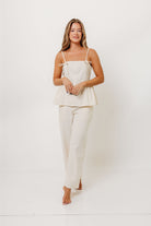 Keira 100% Cotton Bow Trim Peplum Top in Cream