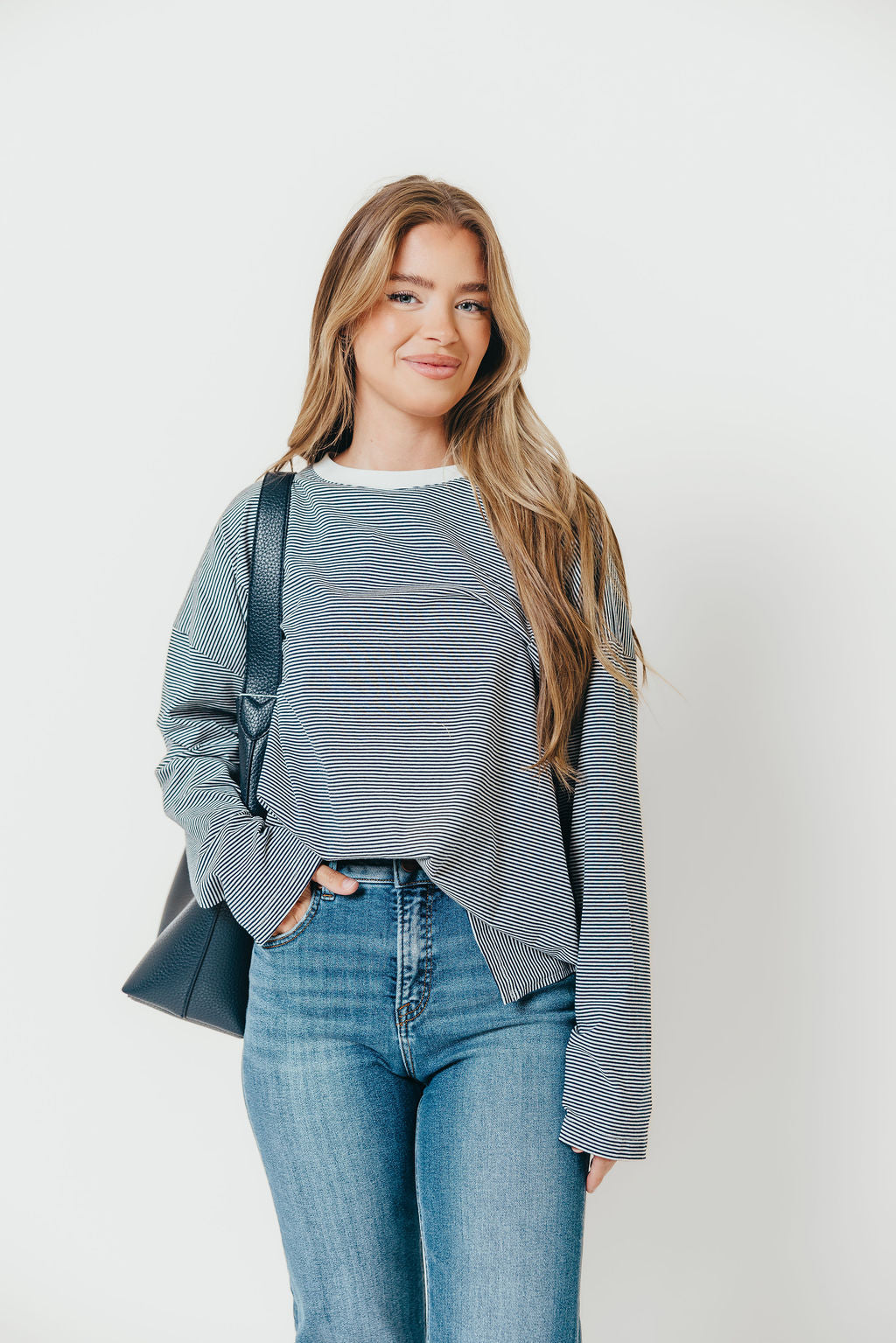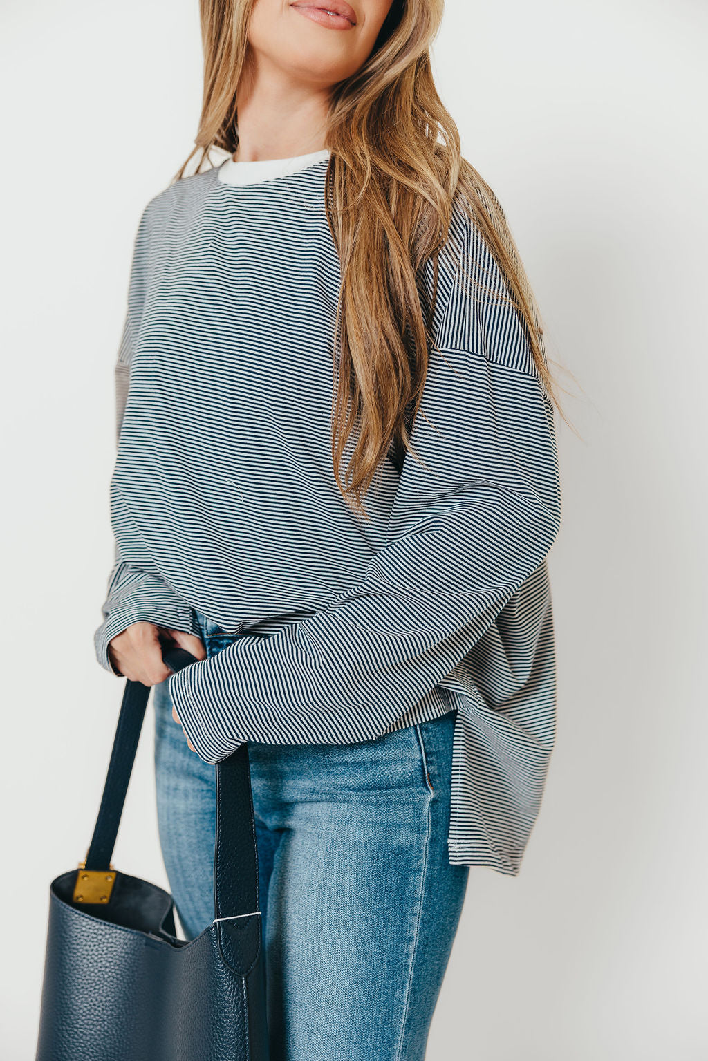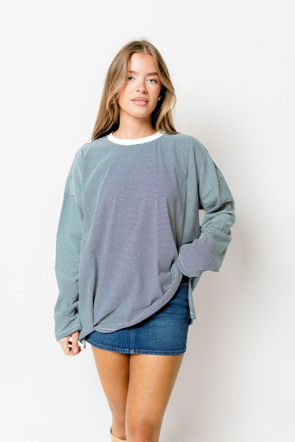 GARMENT DETAILS: Oversized striped knit top with dropped shoulders and contrast color rounded neckline.