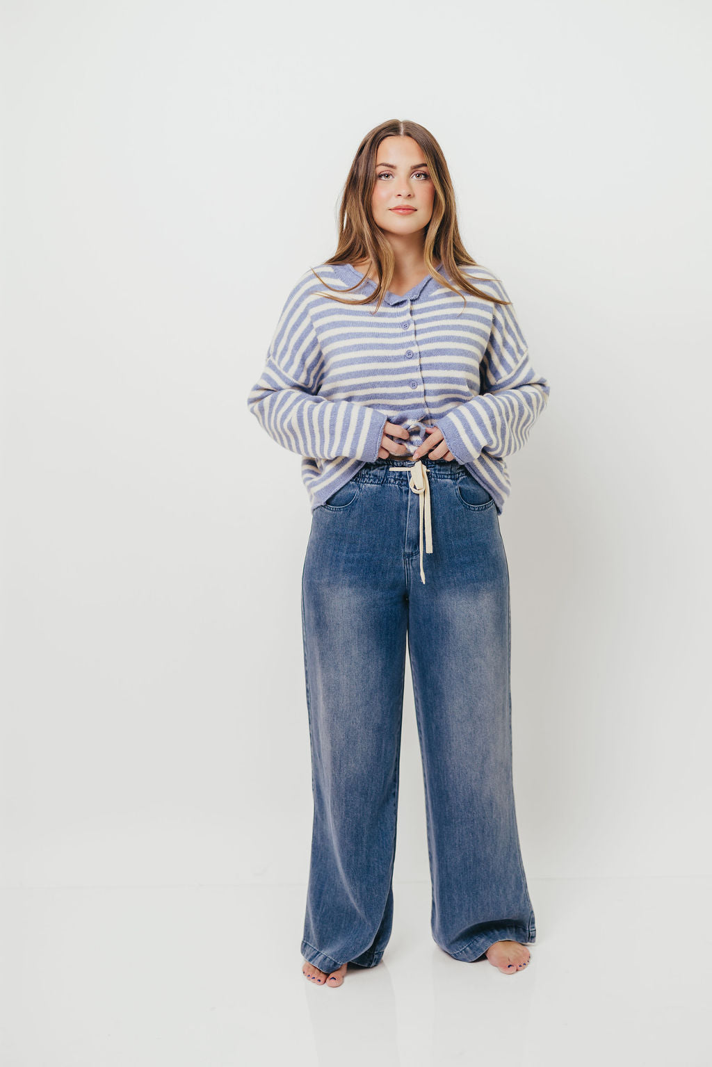 GARMENT DETAILS: Slouchy trousers in a soft Tencel Lyocell blend. Features a button/zipper closure with adjustable tie detail. Features a wide-leg silhouette, dual side pockets, and relaxed fit.