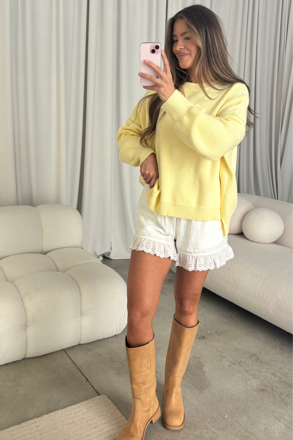 Just in time for cool autumn nights, the Leigh Sweater delivers a cozy Viscose softness and stunning hue that compliments every skin tone. We love this particular sweater paired with a pair of our cute shorts for a chic outfit you can wear from season to season.