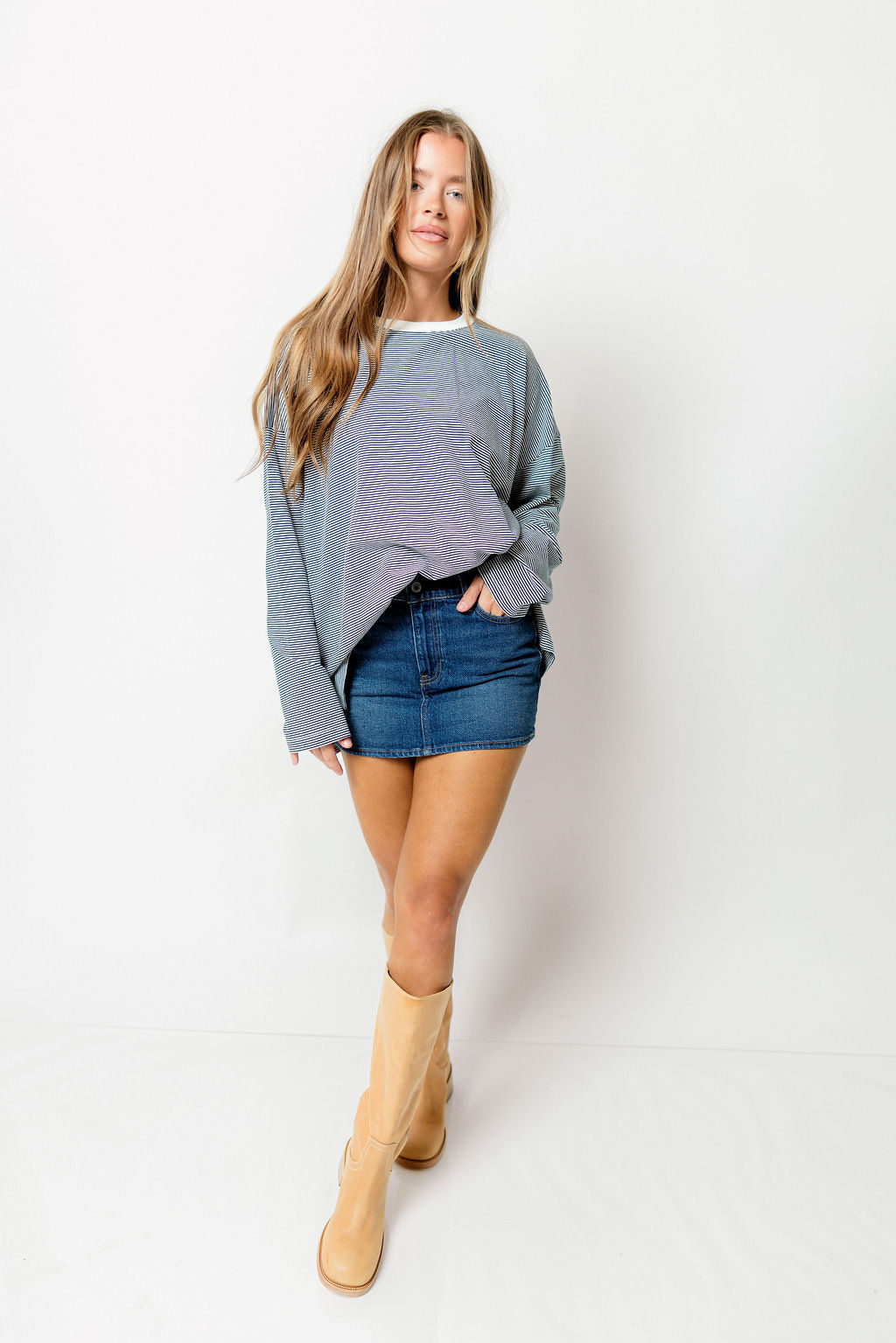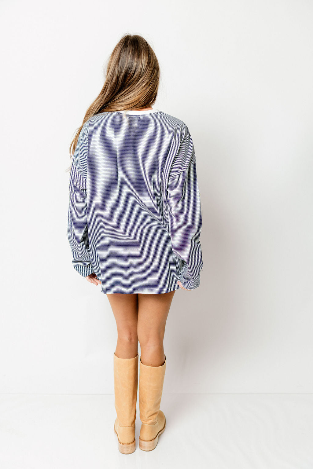 GARMENT DETAILS: Oversized striped knit top with dropped shoulders and contrast color rounded neckline.
