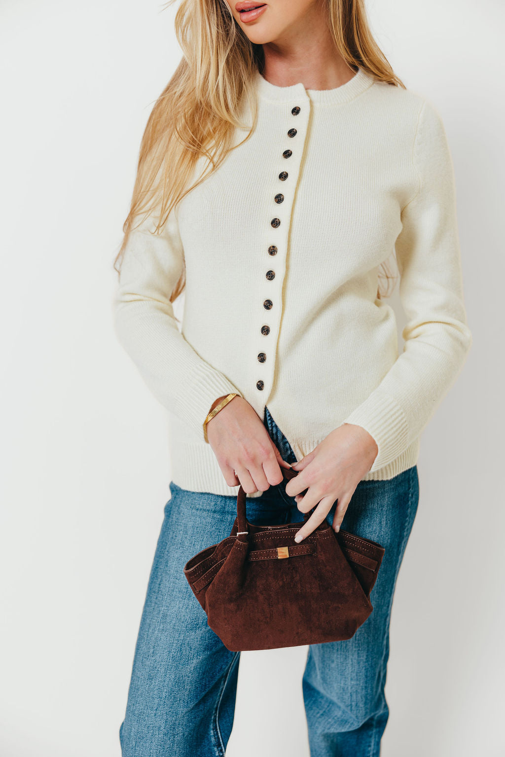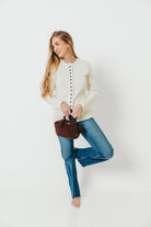 Priya Cardigan Top with Front Slit in Cream