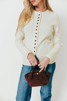 Elegance meets versatility with our new Priya Cardigan! This charming knit sweater offers a truly sophisticated silhouette, with contrast color buttons and a sleek, refined fit that's perfect for pairing with trousers or denim.
