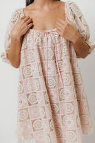 Georgette 100% Cotton Embroidered Mini Dress in Pink