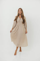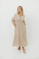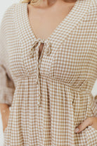 Hunter Printed Gauze Midi Dress in Natural Plaid - Bump Friendly