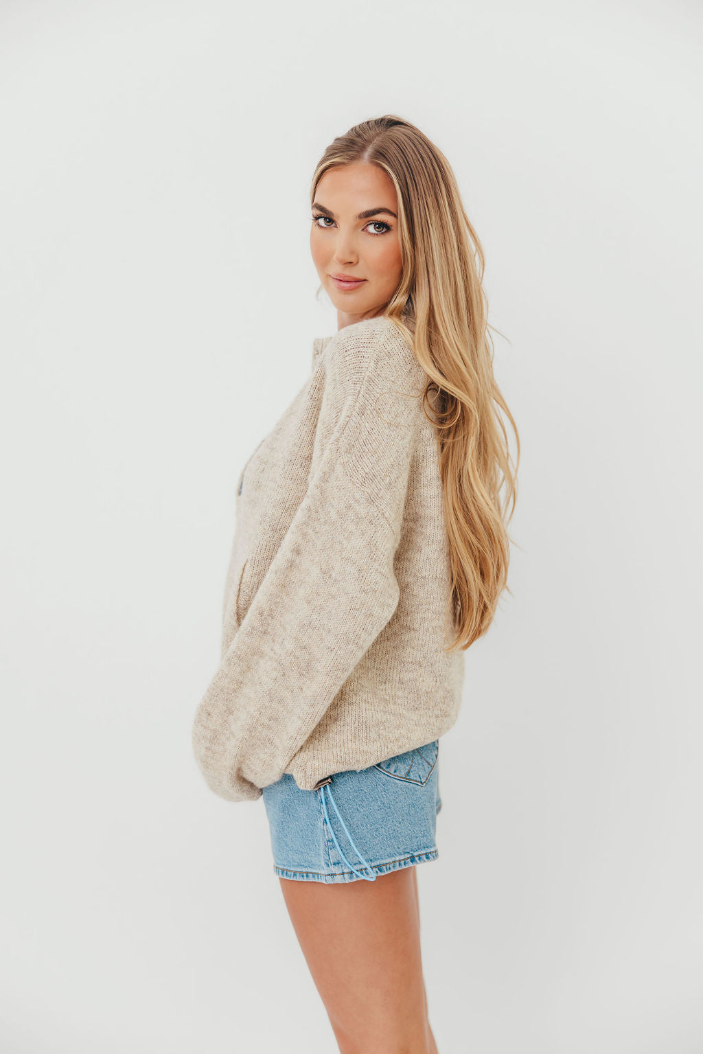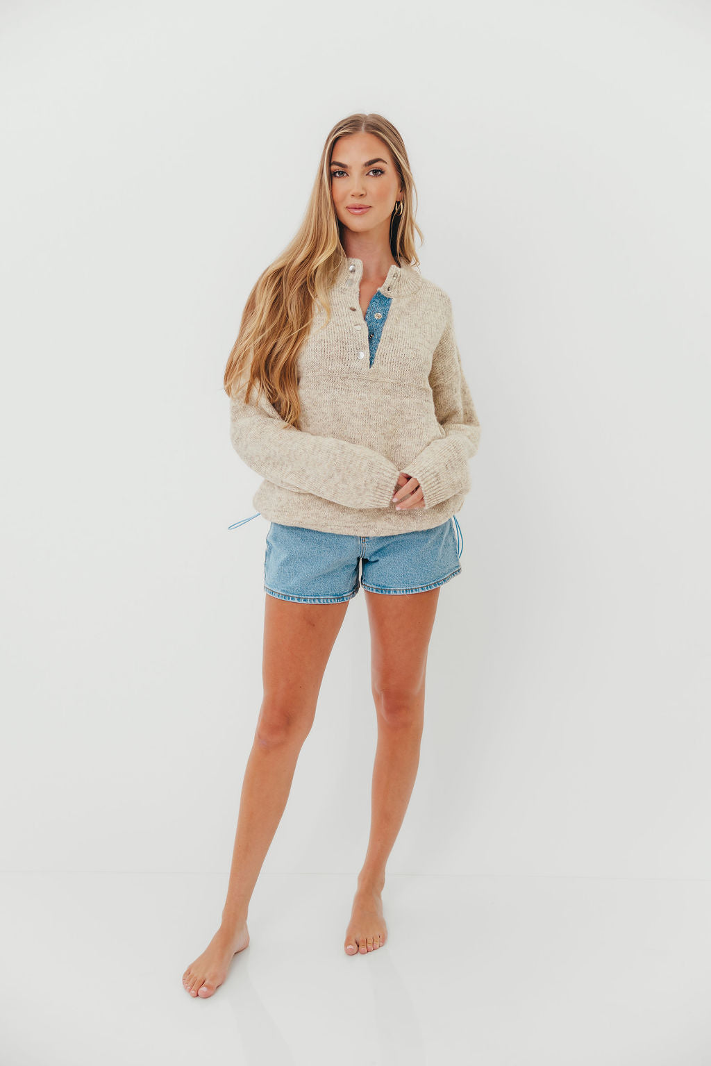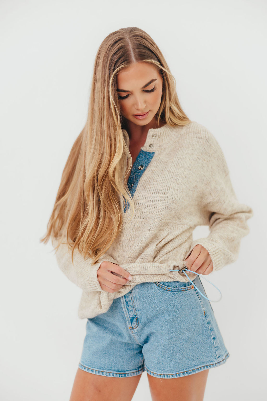 Blythe Two Tone Snap Collar Sweater in Oatmeal