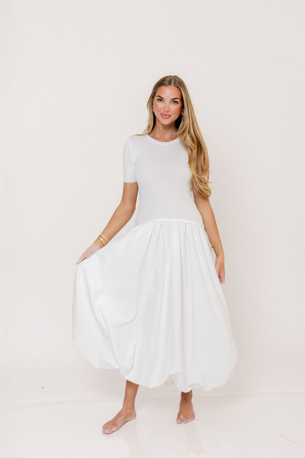 Zaniyah Bubble Skirt Midi Dress in White