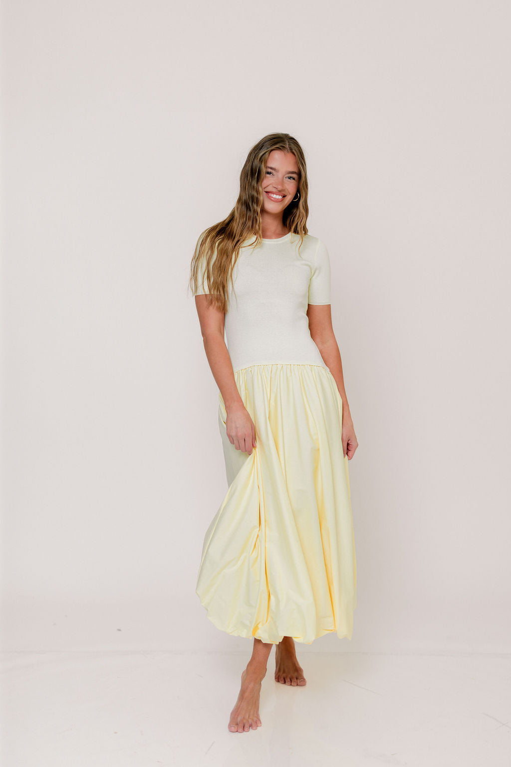 Zaniyah Bubble Skirt Midi Dress in Butter Yellow