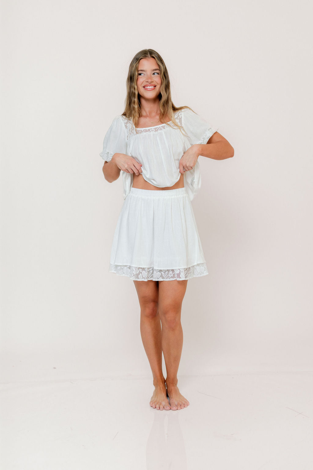 Misty Lace Inset Top in Ivory