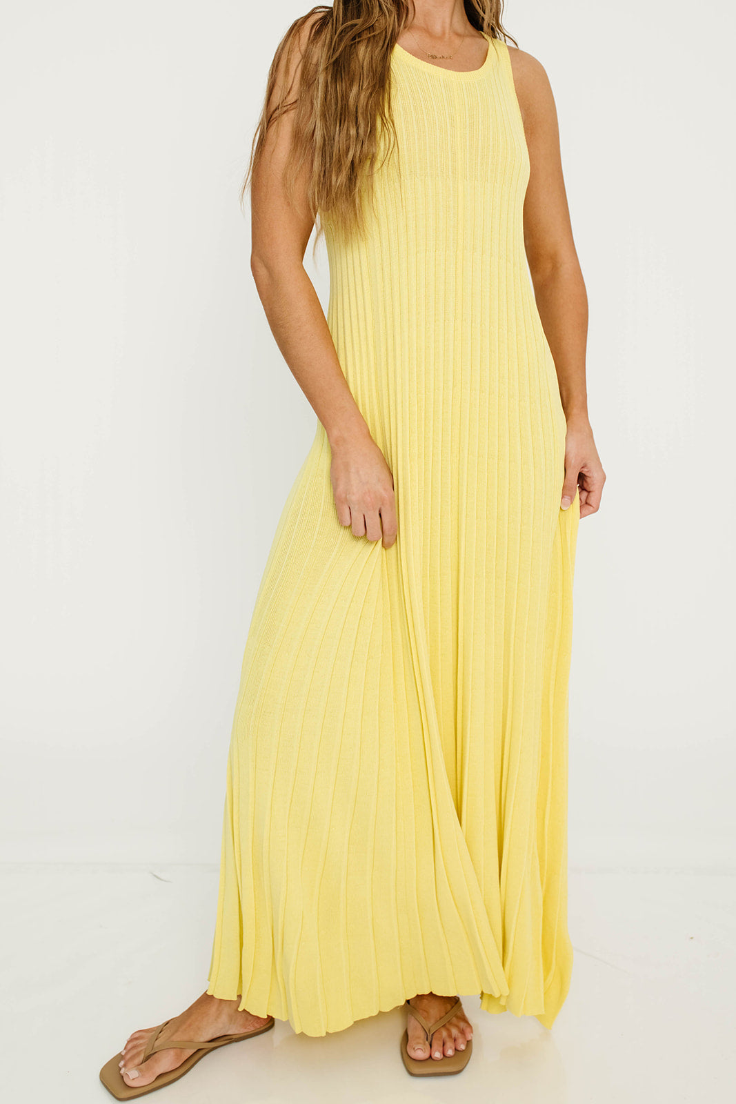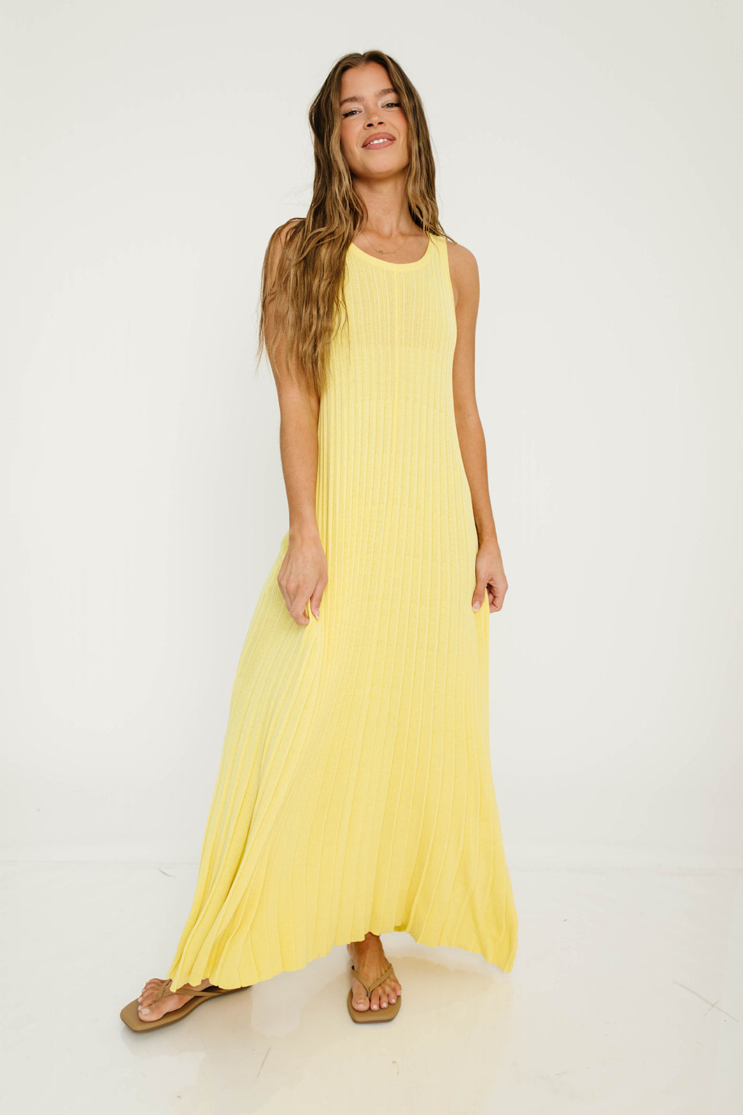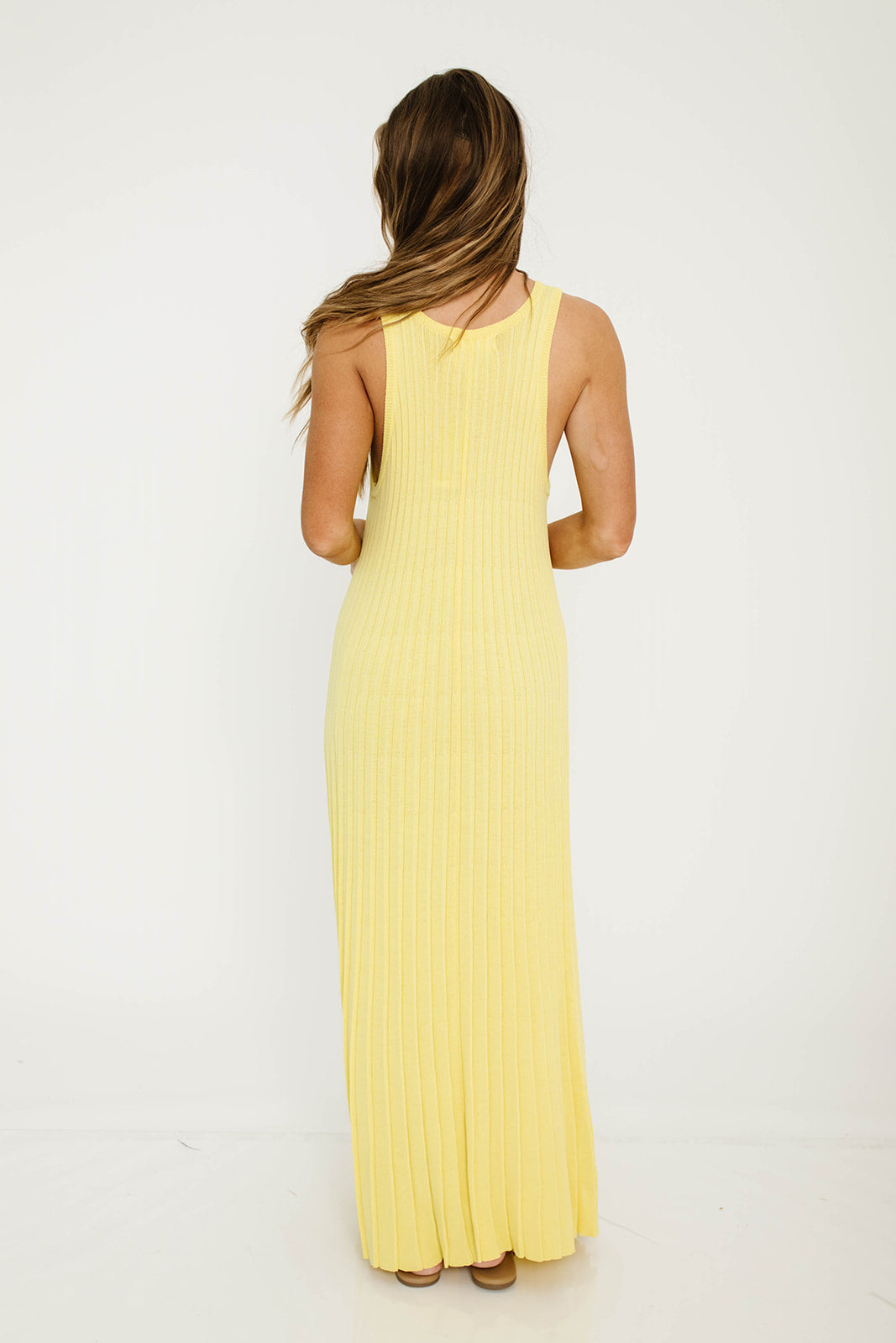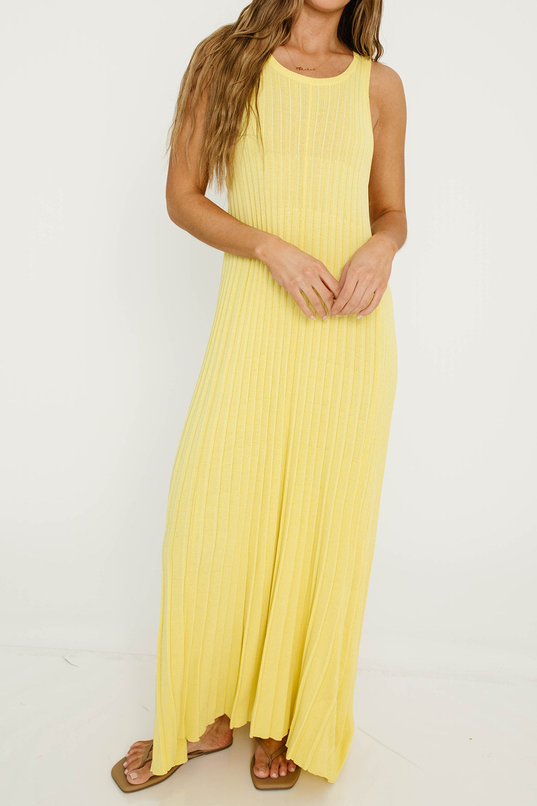 GARMENT DETAILS: Relaxed ribbed knit maxi dress with scooped neckline, tank-style silhouette, and comfortable, flowy skirt.