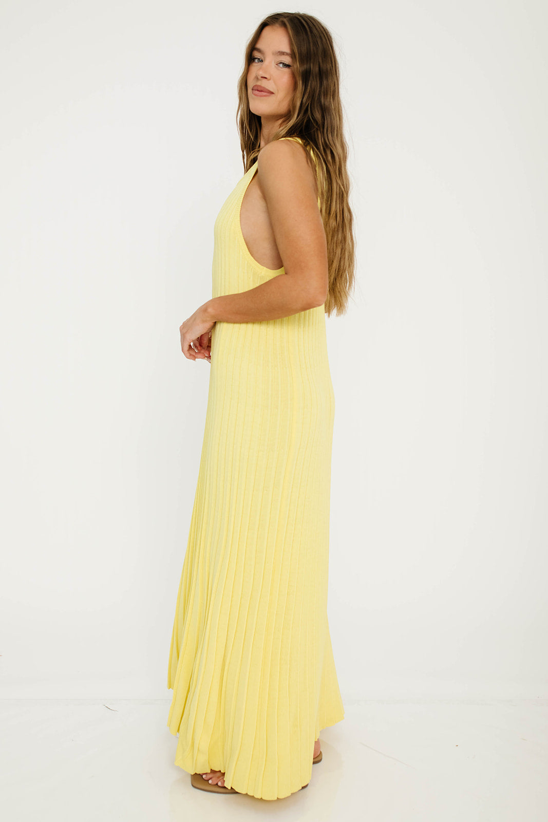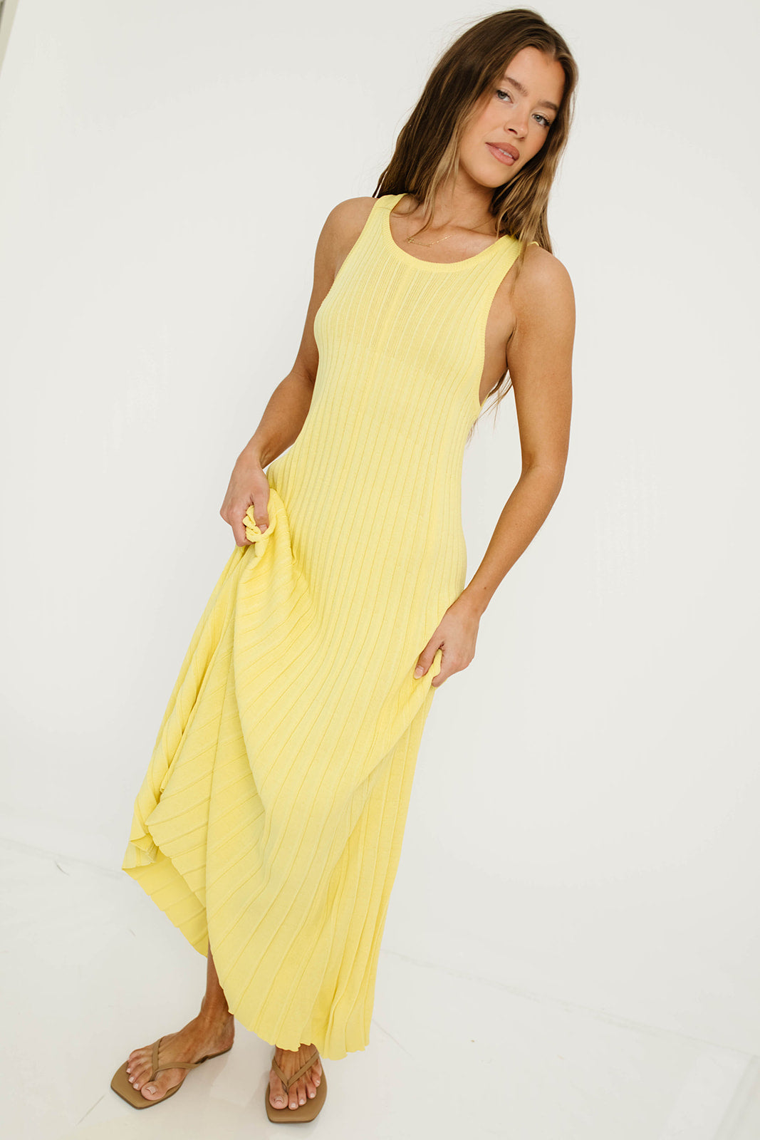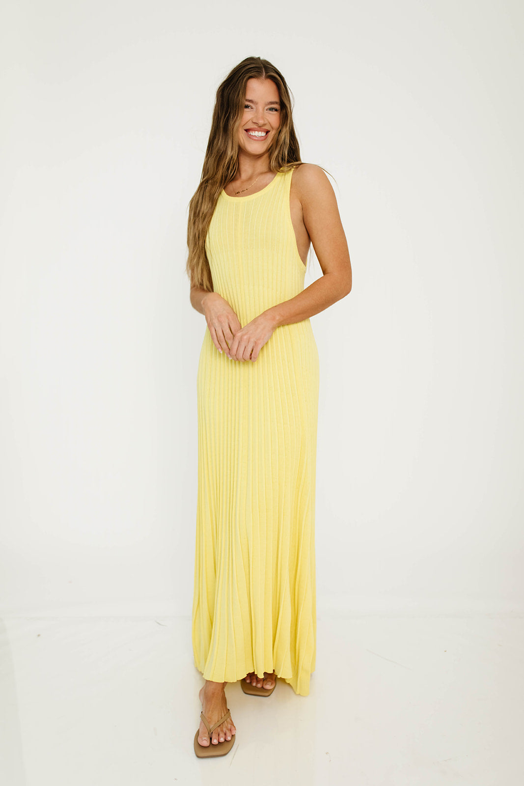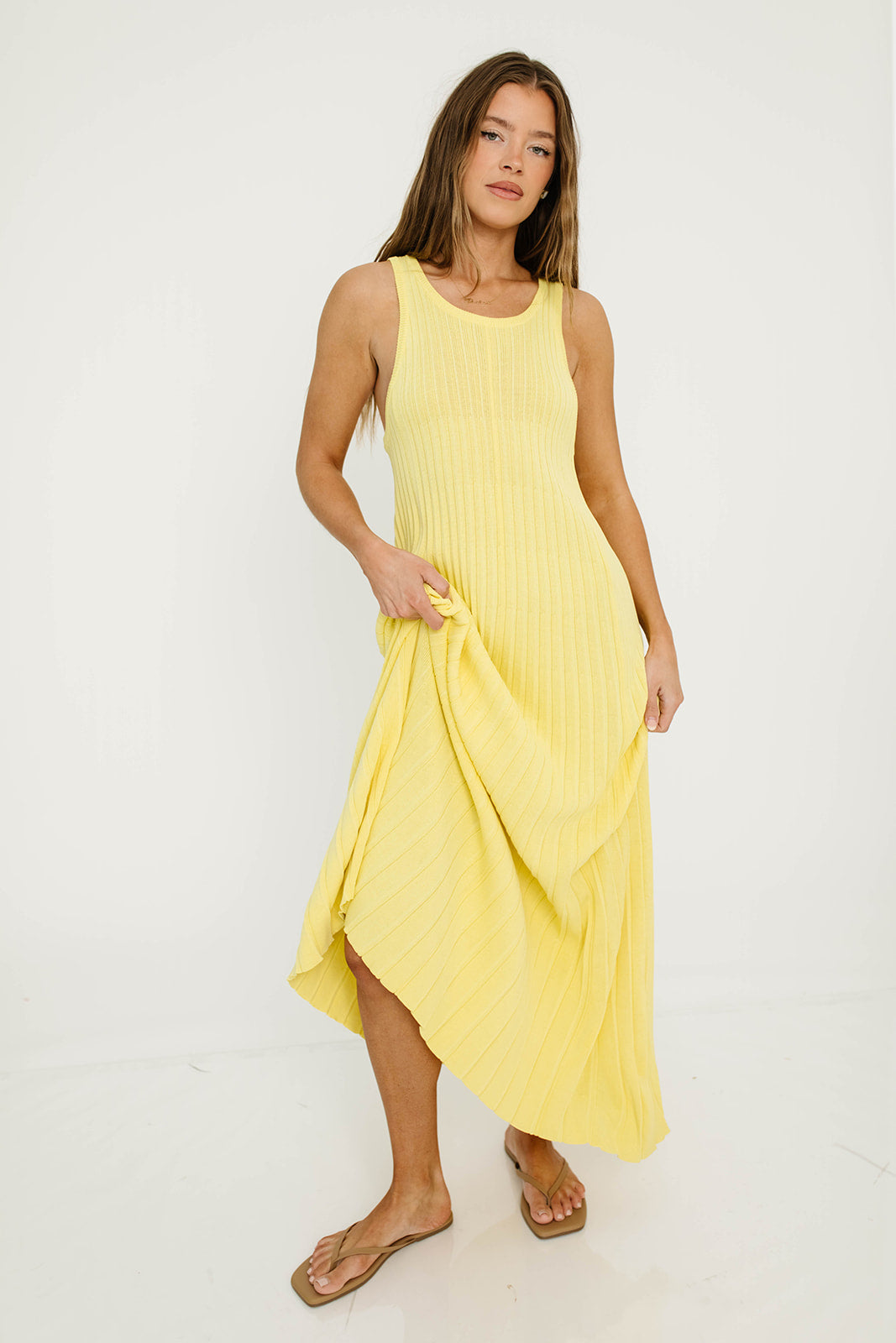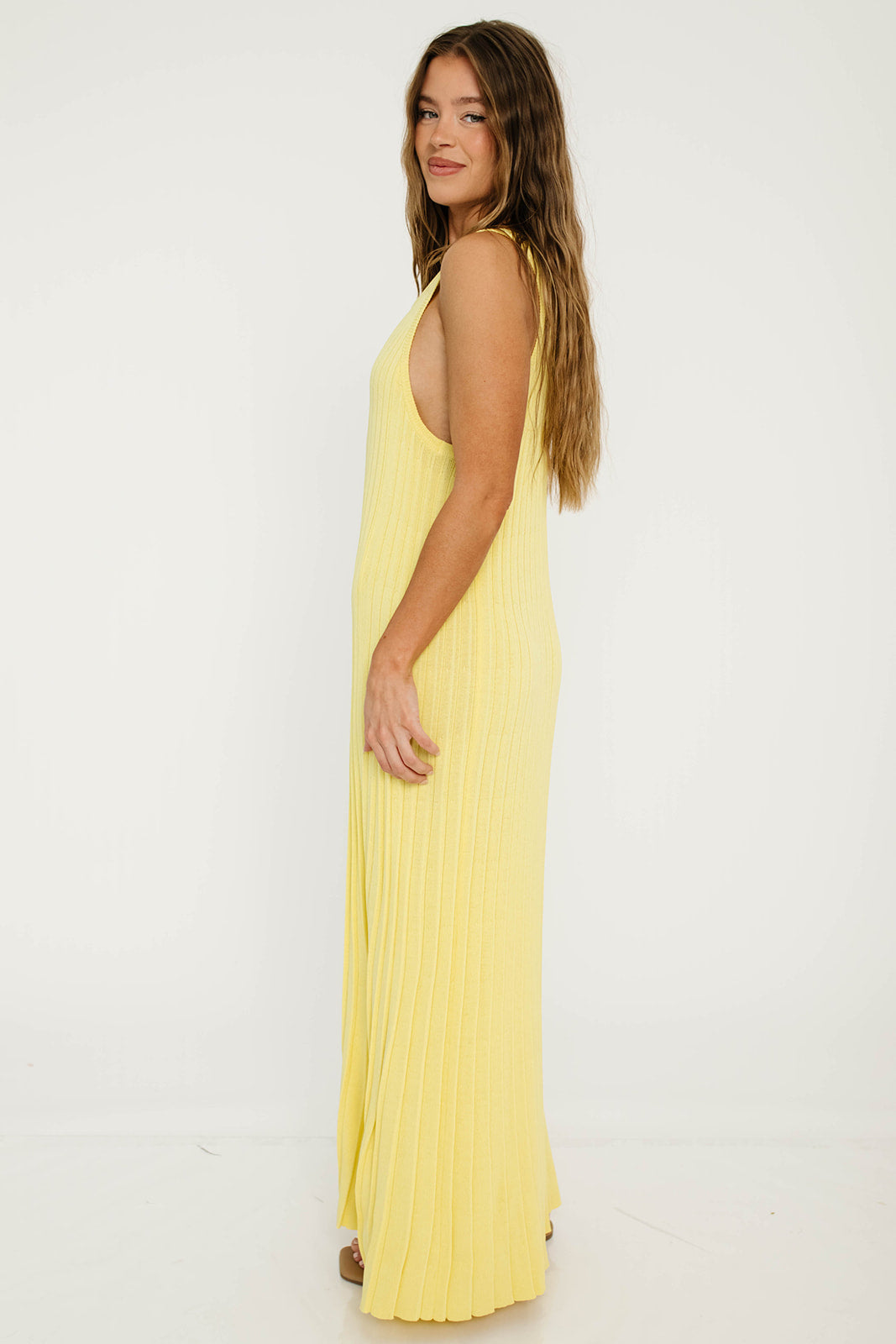 GARMENT DETAILS: Relaxed ribbed knit maxi dress with scooped neckline, tank-style silhouette, and comfortable, flowy skirt.