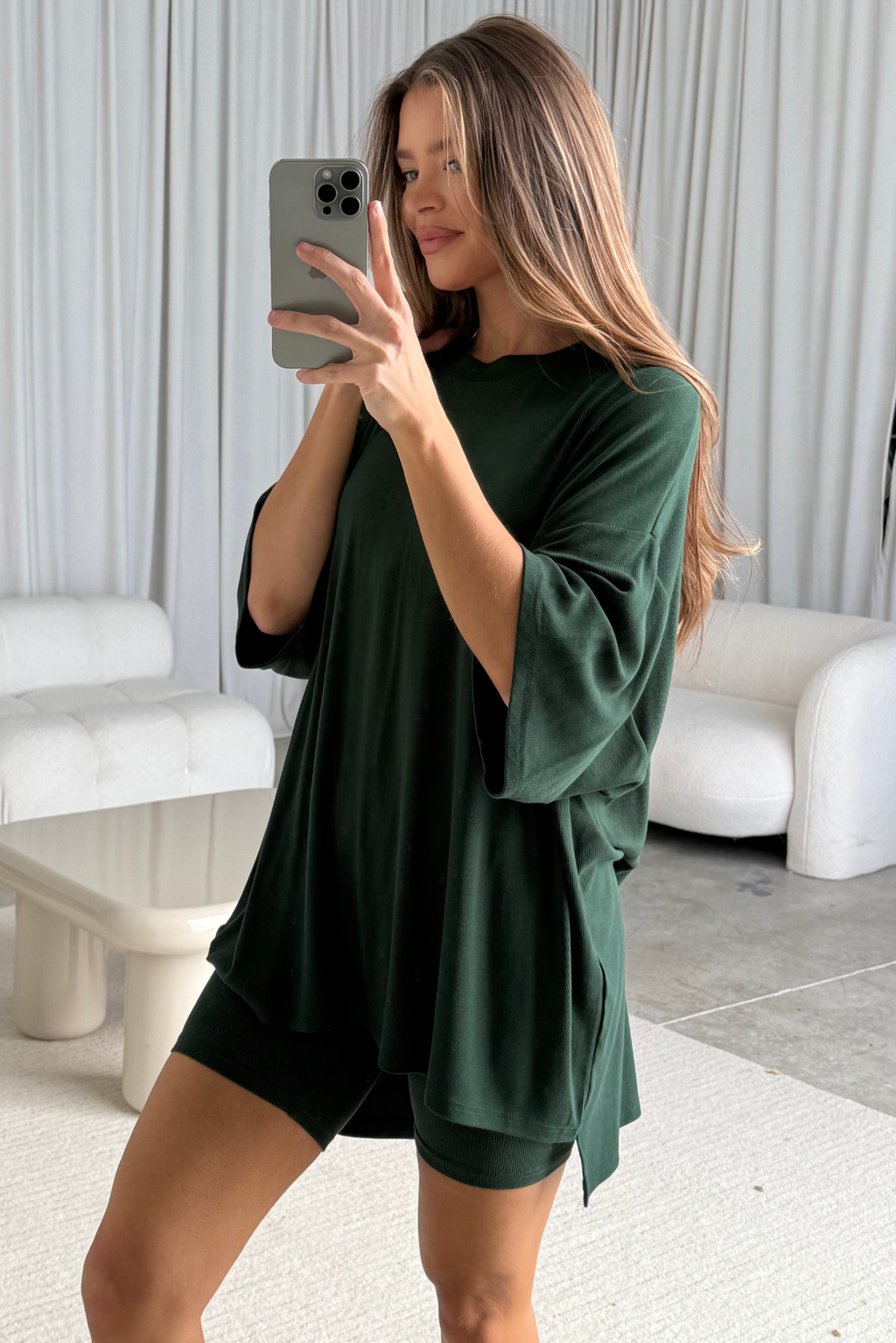 If you're going to buy a lounge set this season, make it this one! Its buttery soft, ribbed material is absolutely dreamy, and we love the combination of the oversized top with comfy biker shorts. If you have to leave the house, pair it with a baseball cap, gold hoops, and chunky sneakers - but otherwise, we recommend staying in bed All Weekend Long!
