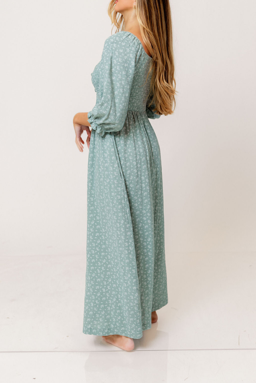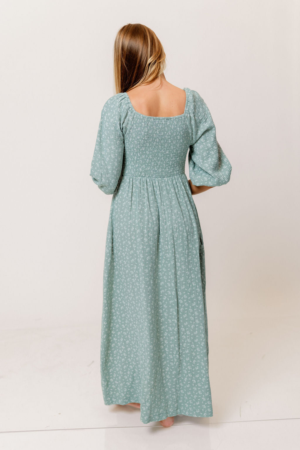 Cecilia 100% Cotton Smocked Maxi Dress in Aqua Foliage - Bump Friendly *2/11 PRE-ORDER*