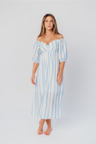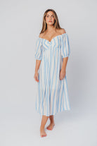 Clara Puffed Sleeve Midi Dress with Twisted Bodice in Cloud