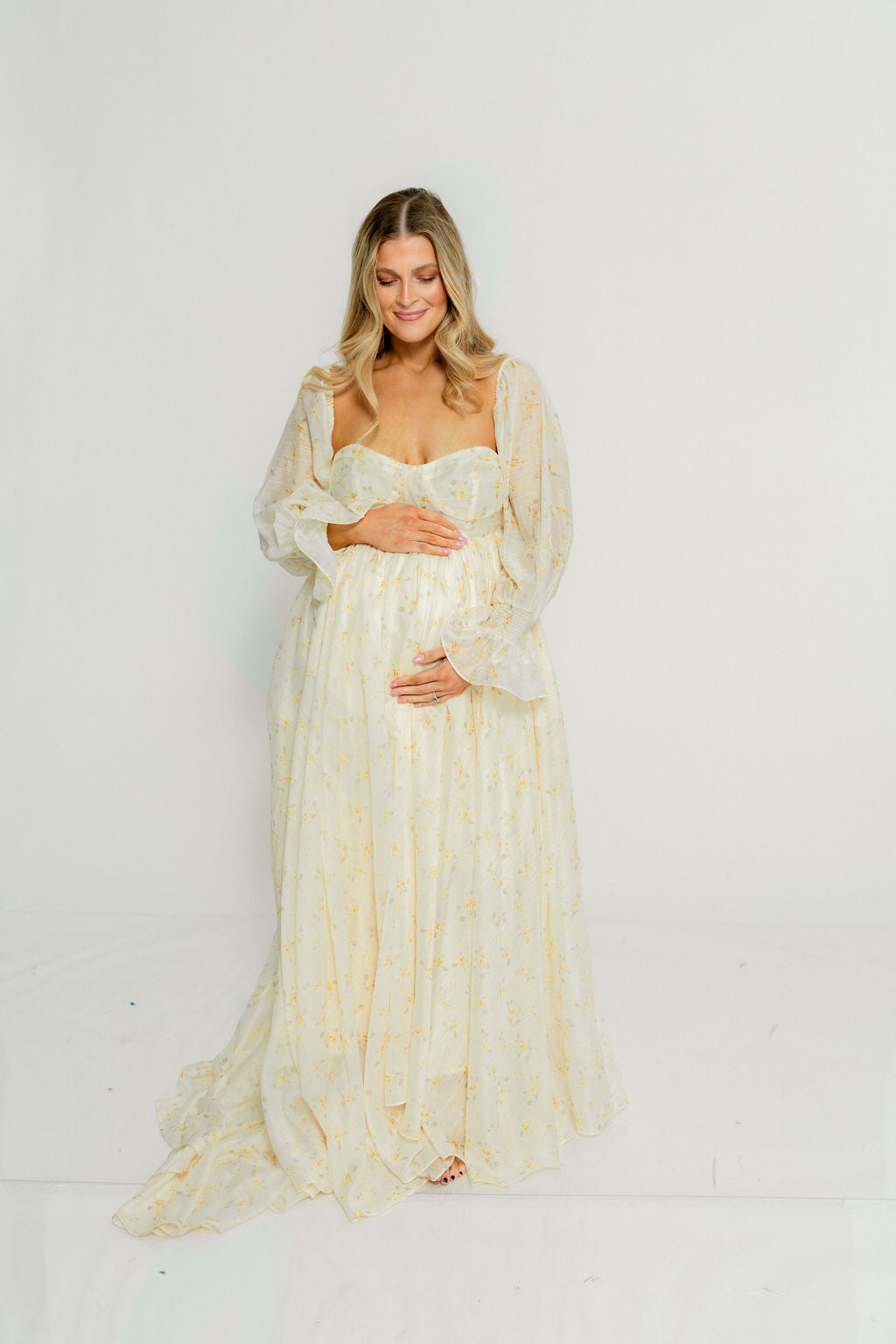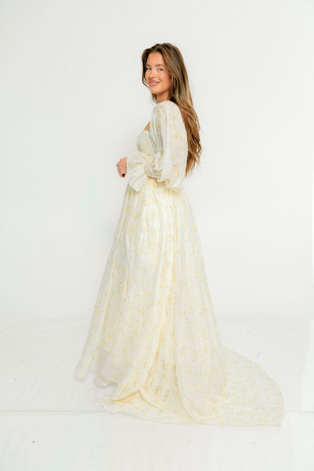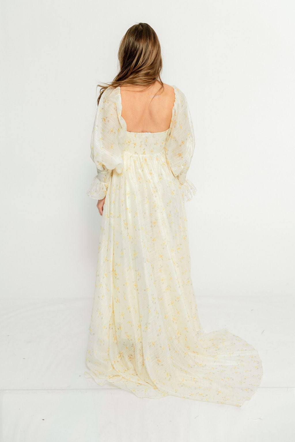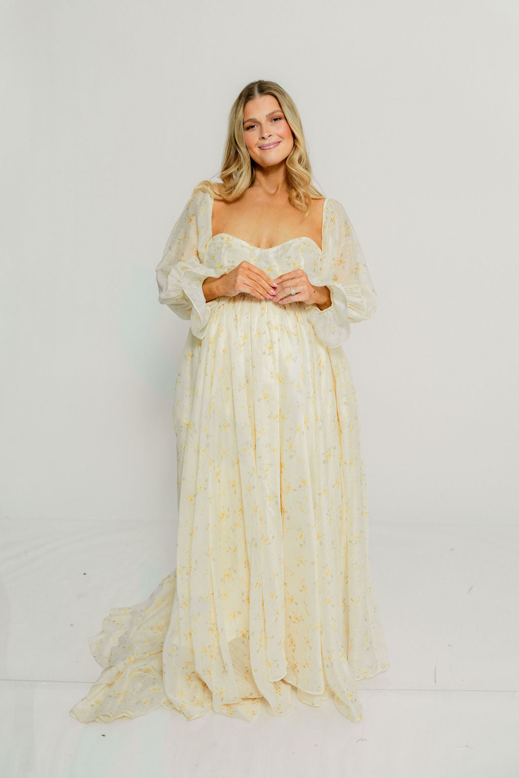 Delilah Maxi Dress with Train in Butter Yellow - Bump Friendly *2/9 PRE-ORDER*
