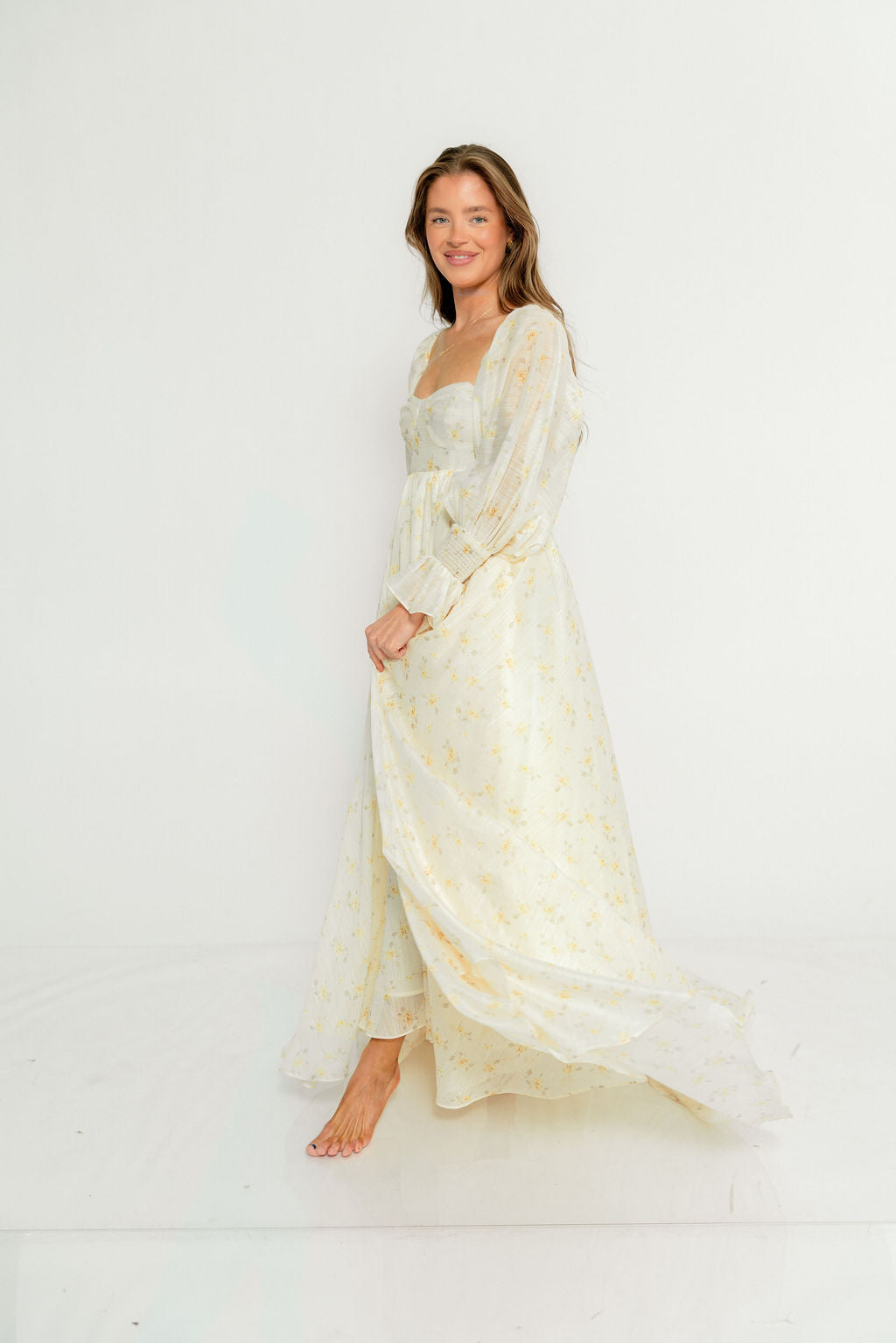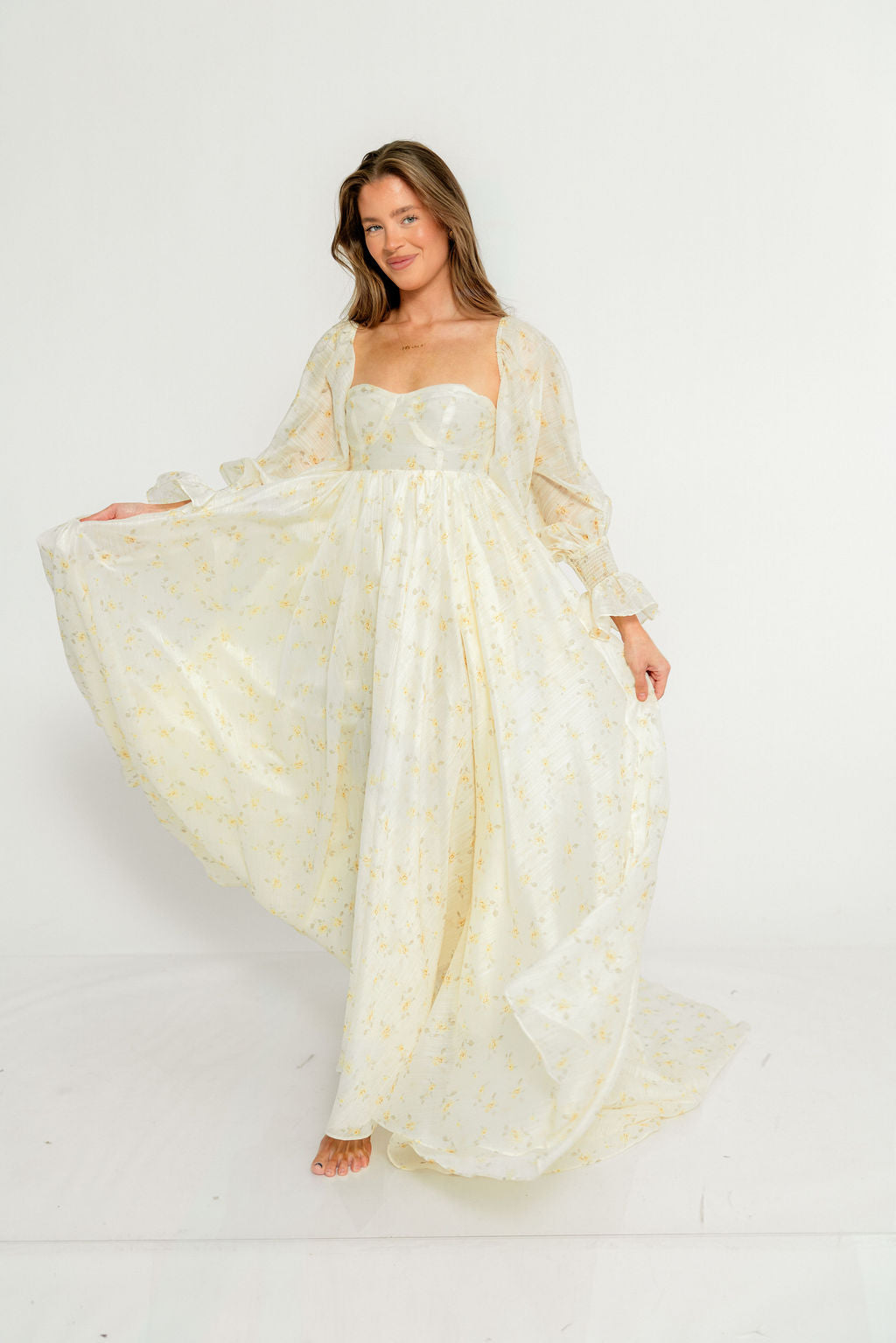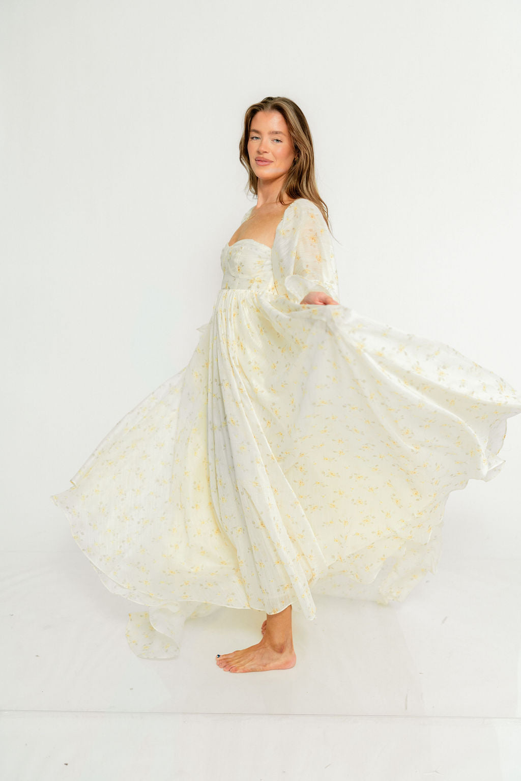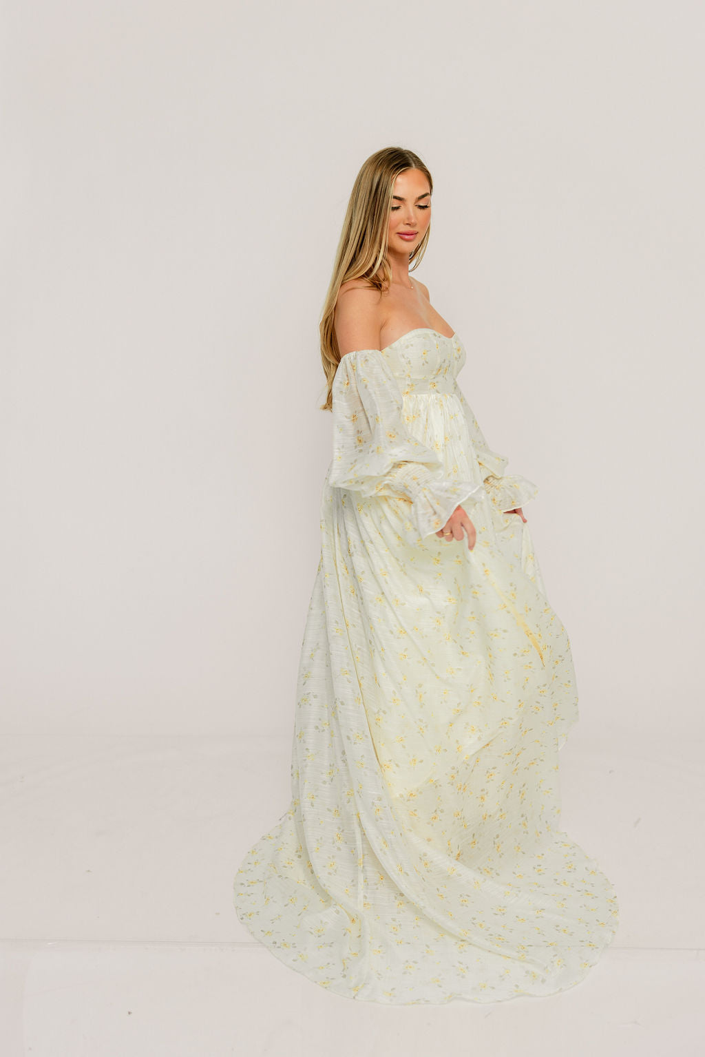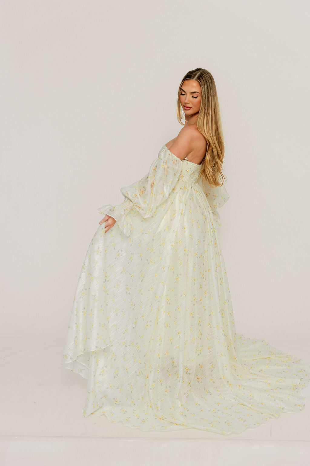 Delilah Maxi Dress with Train in Butter Yellow - Bump Friendly *2/9 PRE-ORDER*