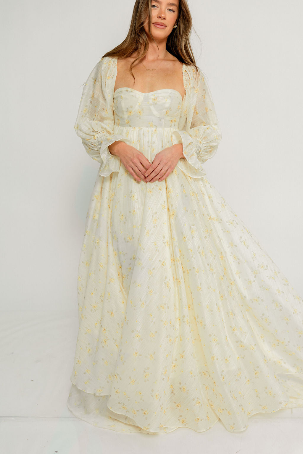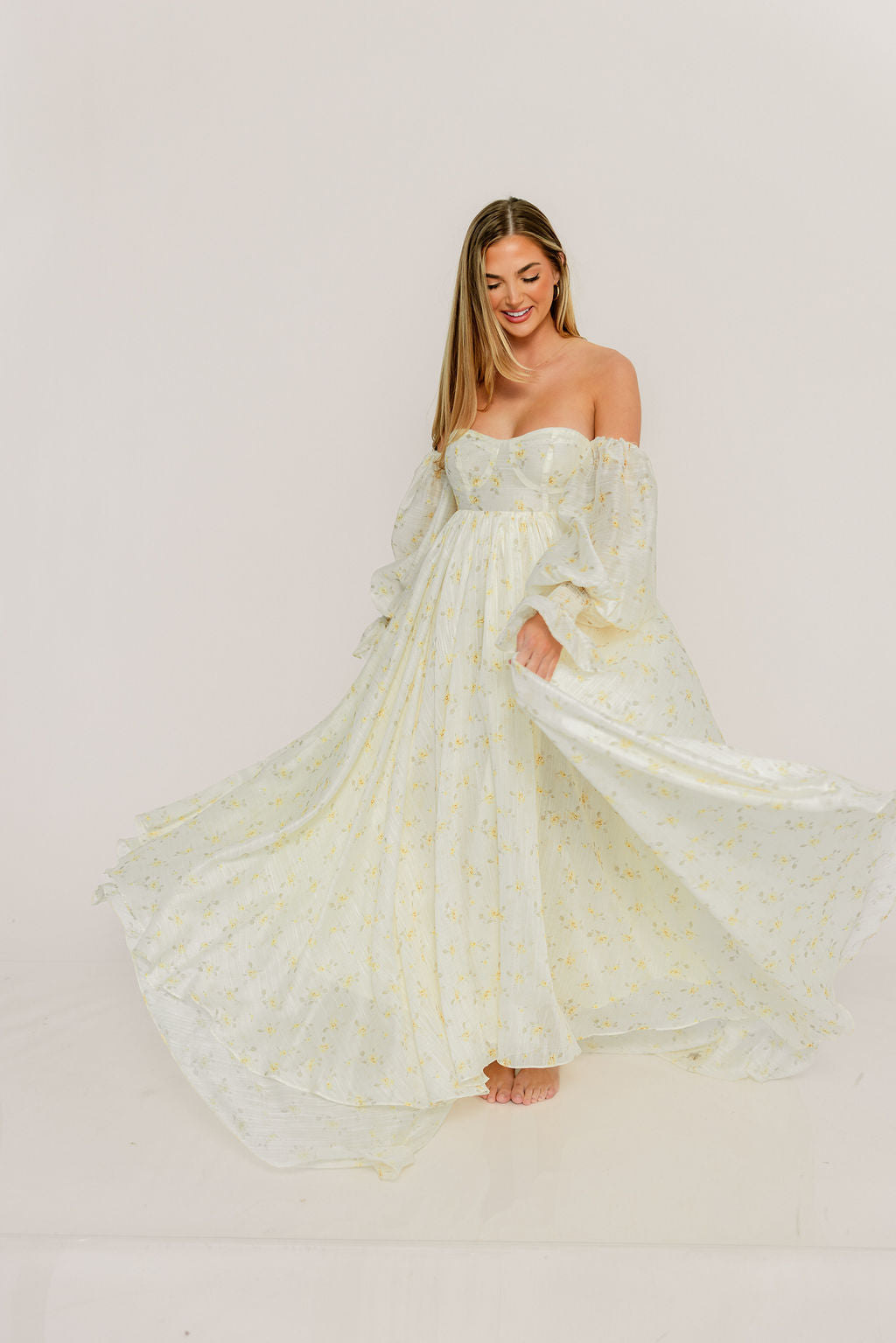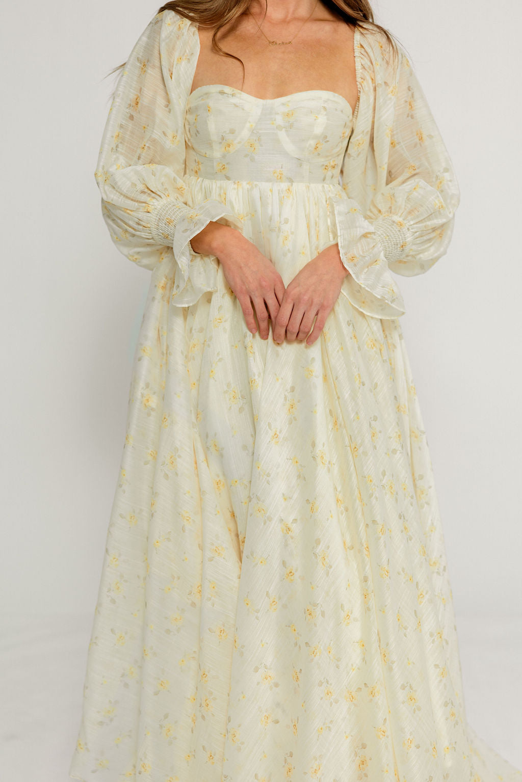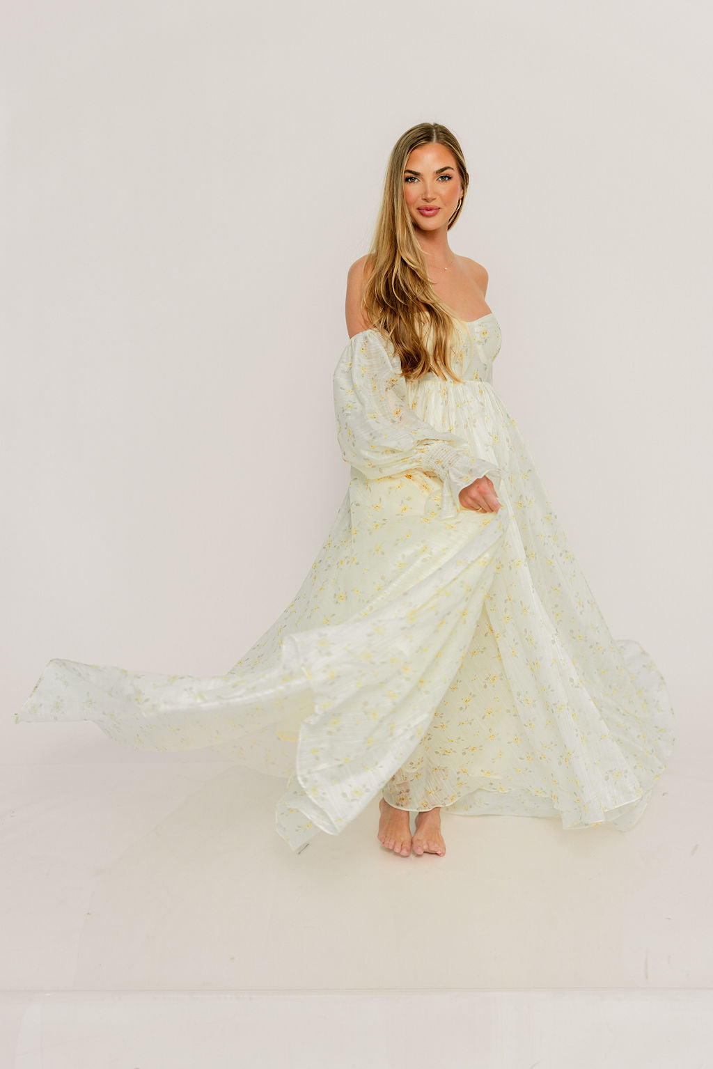Delilah Maxi Dress with Train in Butter Yellow - Bump Friendly *2/9 PRE-ORDER*